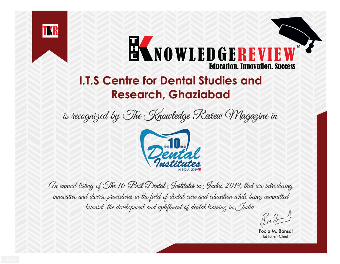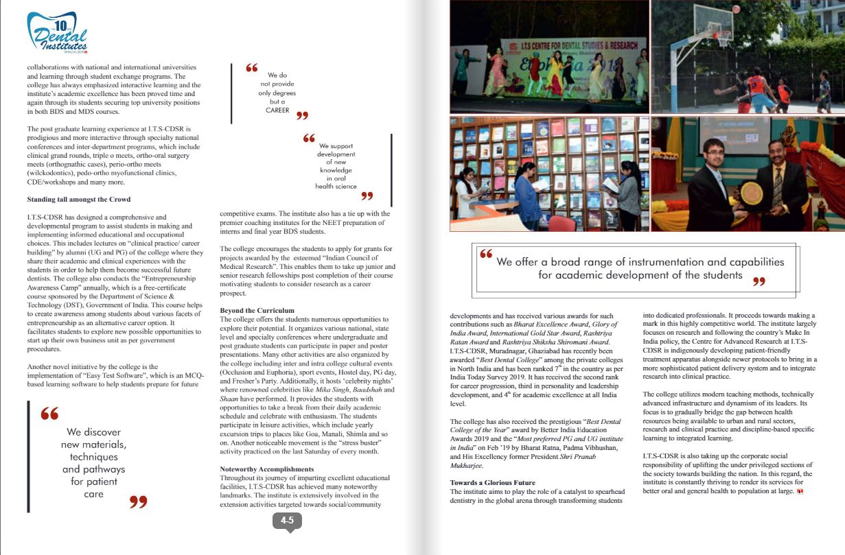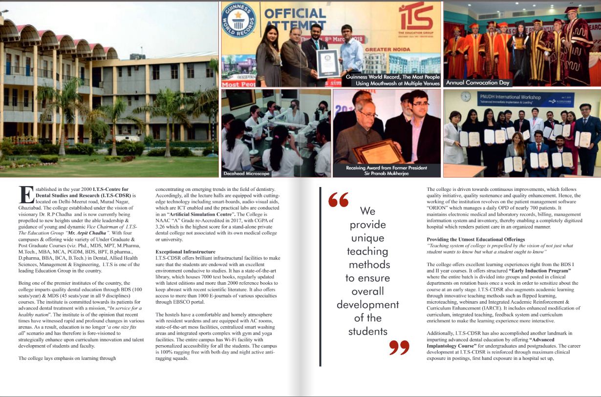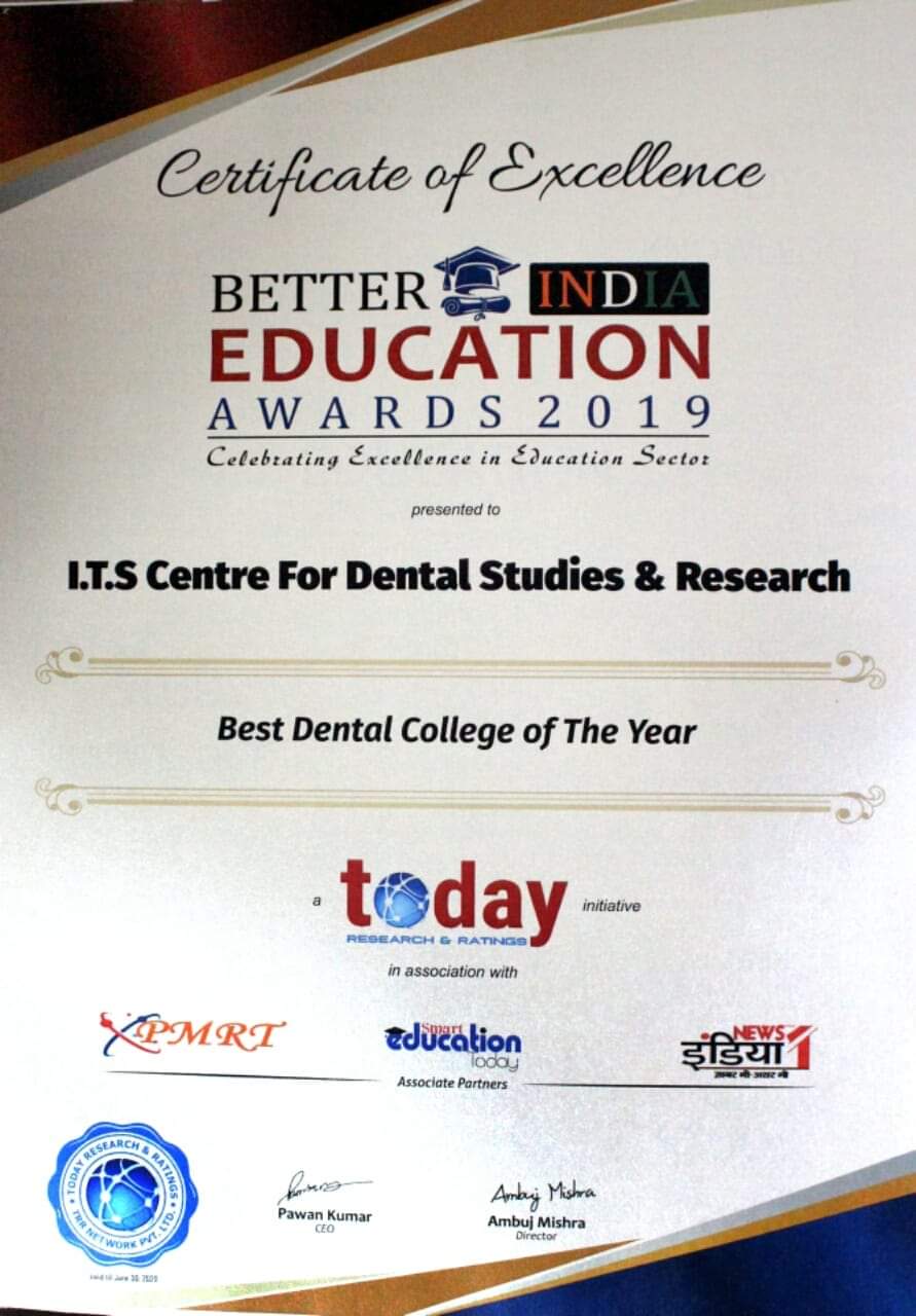 I.T.S Dental College, Ghaziabad receives the prestigious "Best Dental College of the Year" Award 2019 by "Better India Education Awards"