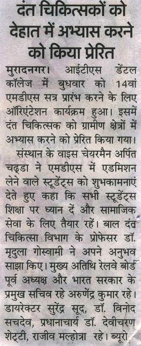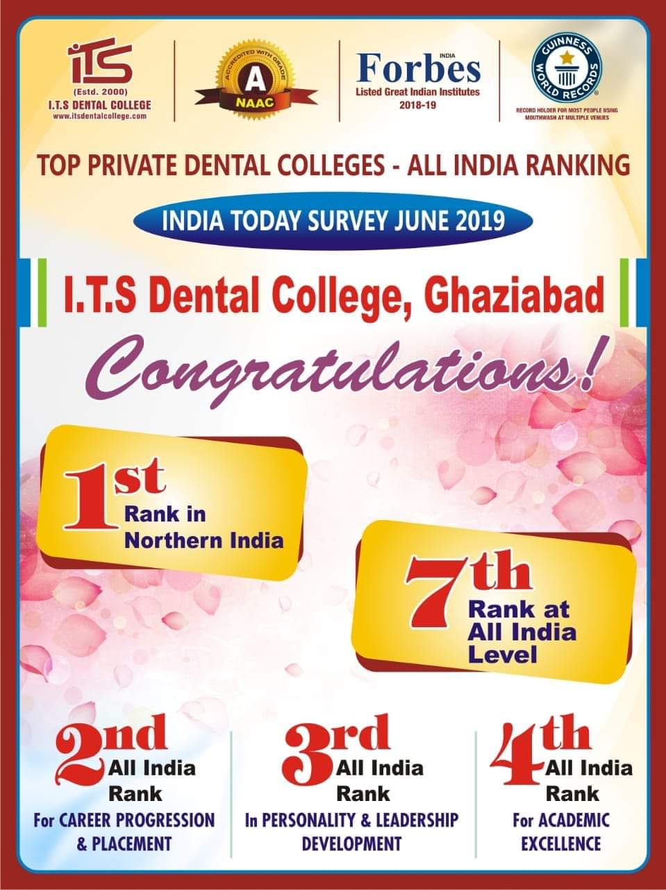 I.T.S Dental College Ghaziabad ranked No 1 for Second time in a row