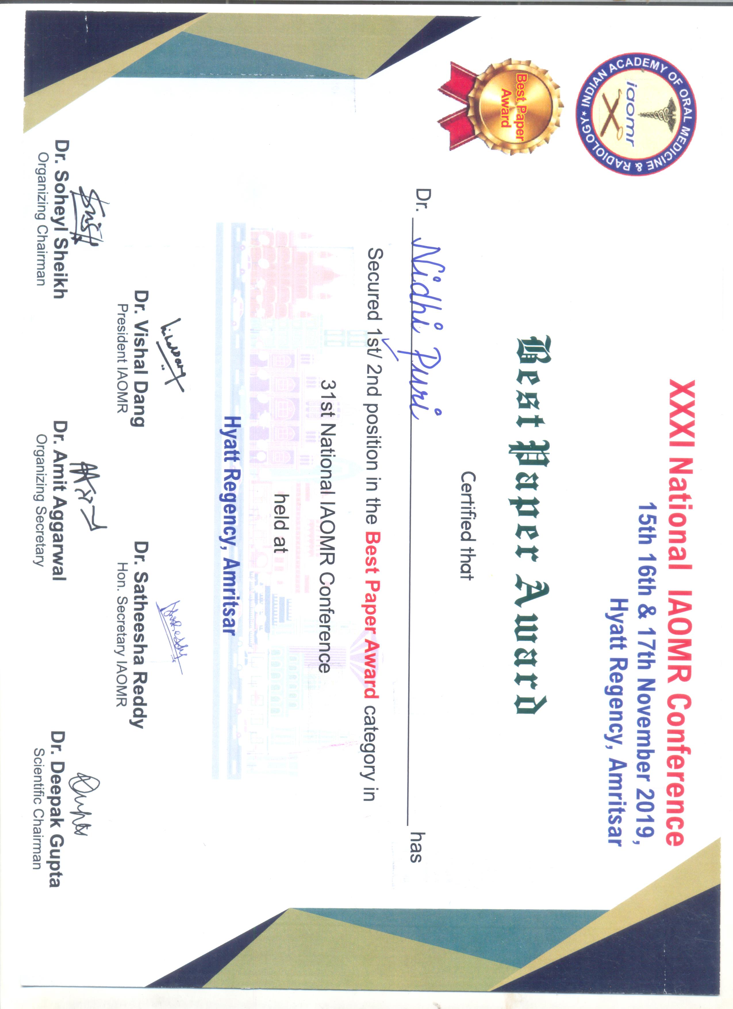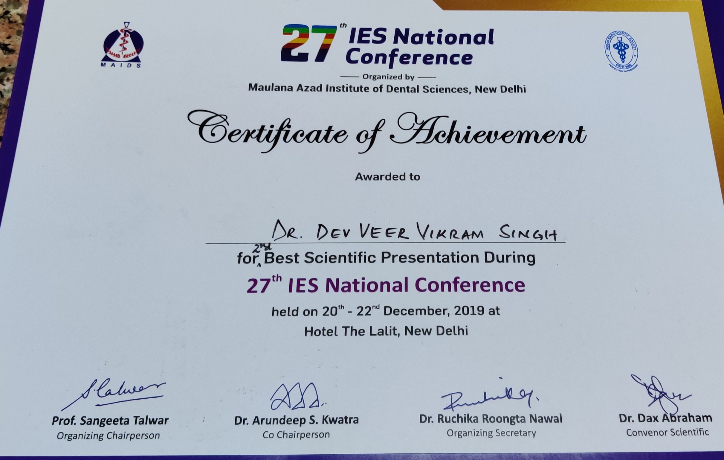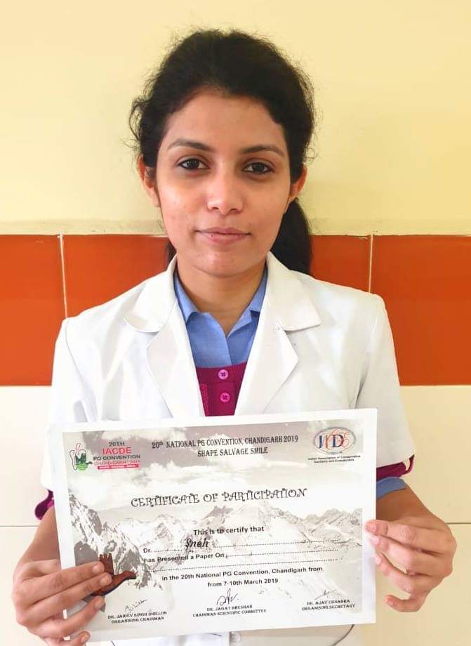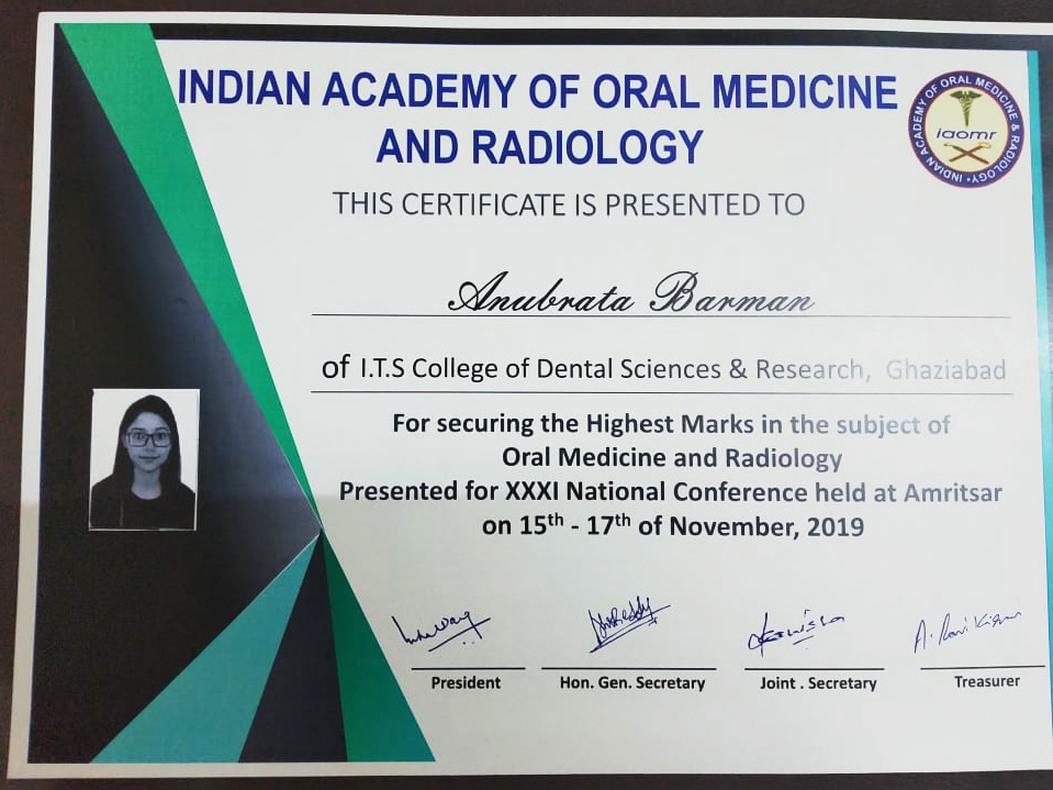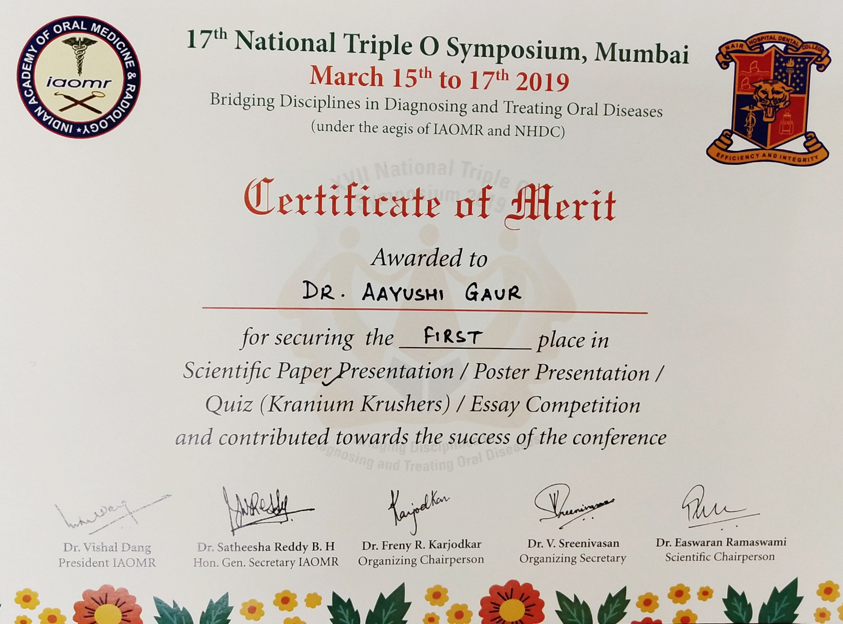 Congratulations to Dr Ayushi Gaur, PG student - Department of Oral Medicine and Radiology