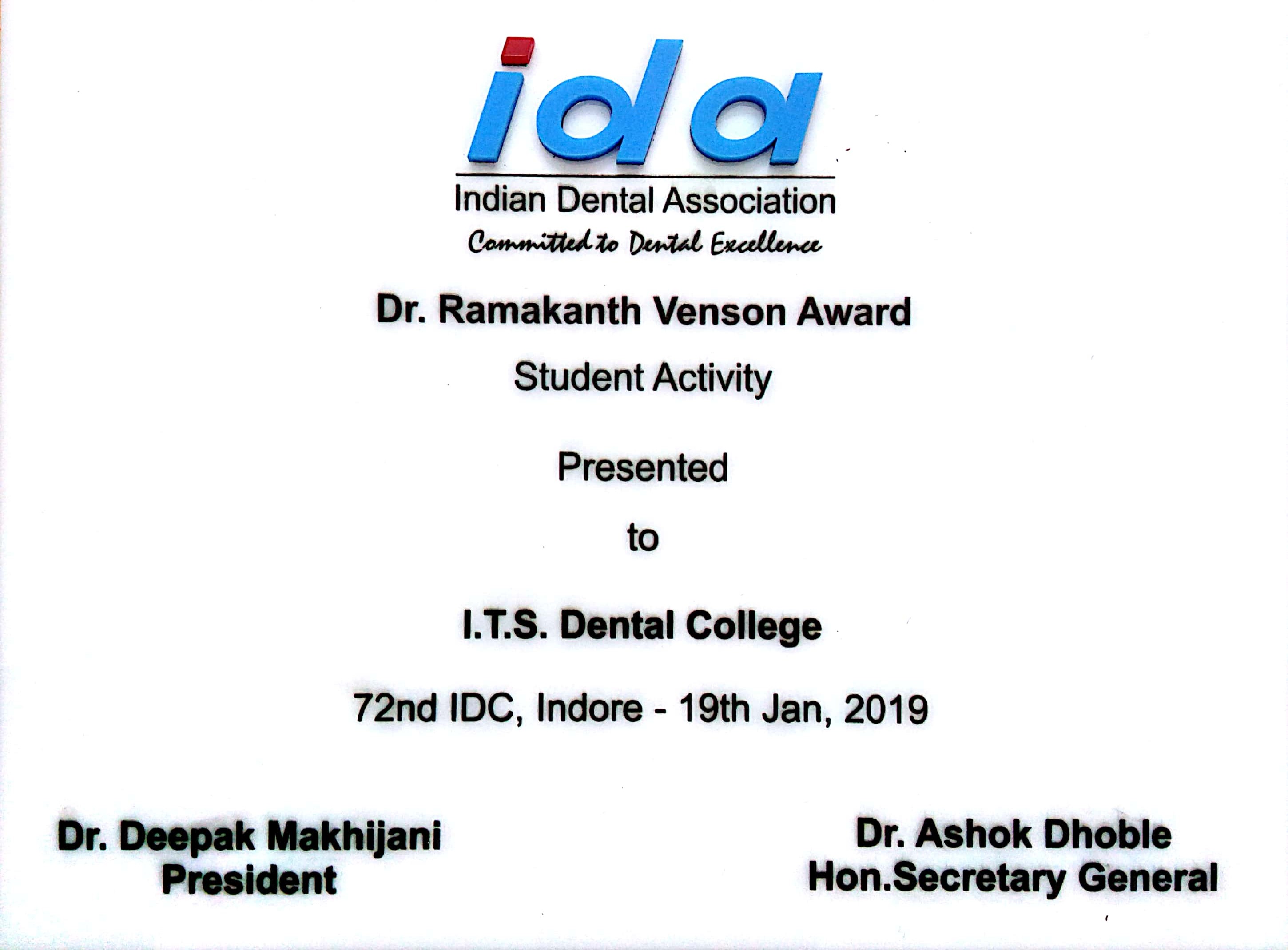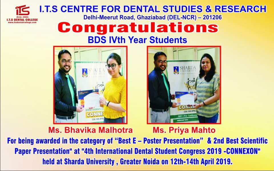 I.T.S Dental College, Ghaziabad receives the prestigious "Best Dental College of the Year" Award 2019