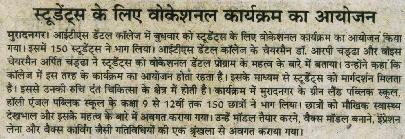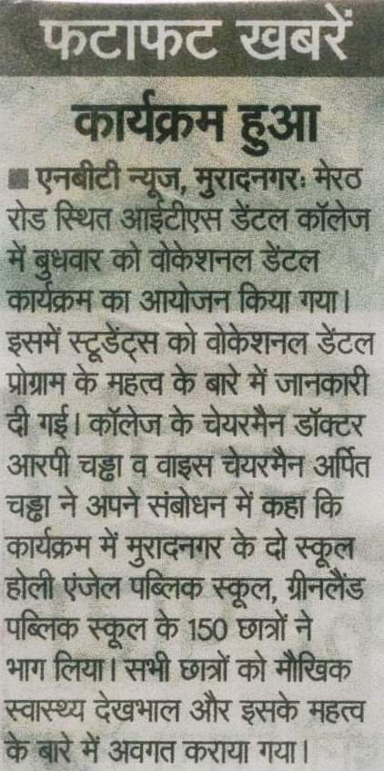 Students of I.T.S Dental College, Ghaziabad were invited by the prestigious Zee News Channel on 18th Jan 2019