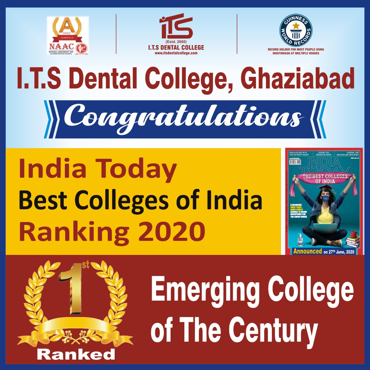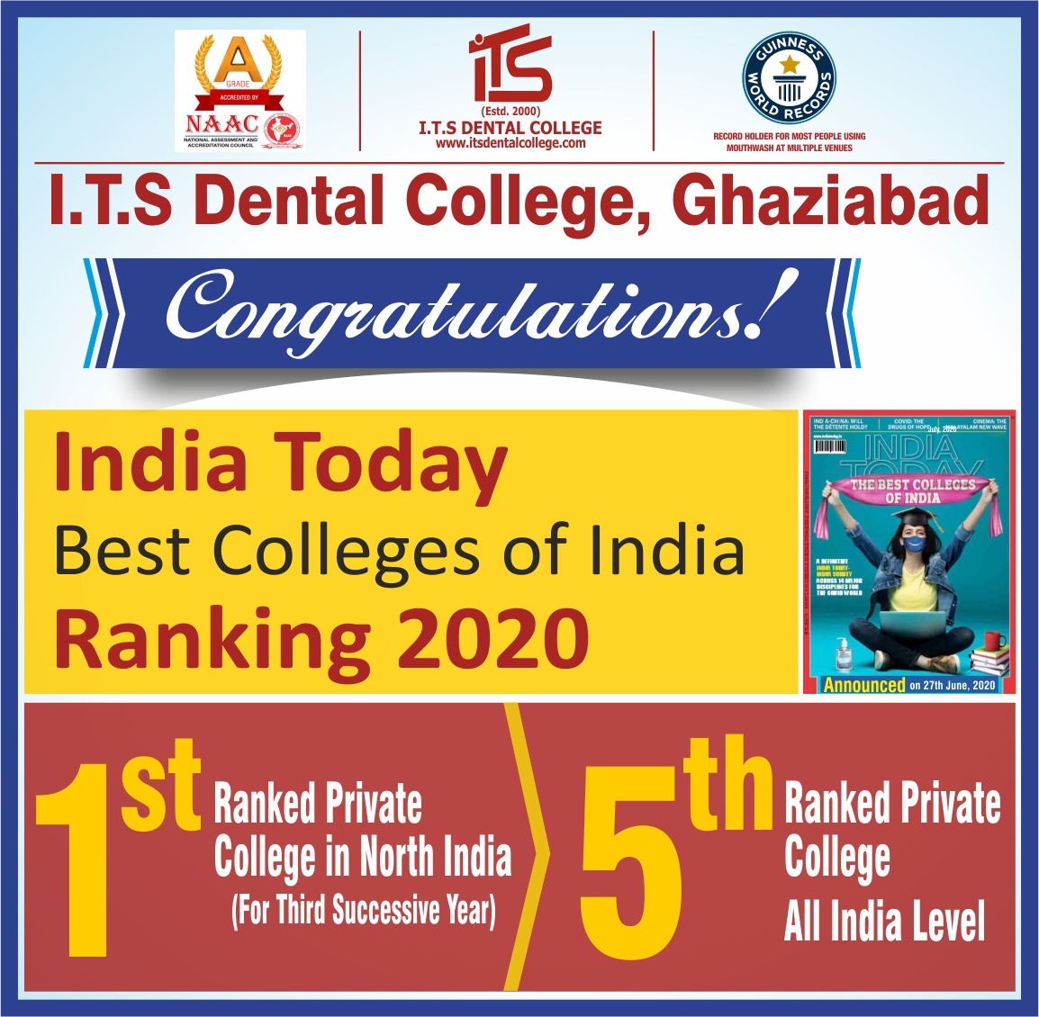 India Today: "Best Colleges of India Rankings 2020" Declares, I.T.S Dental College, Ghaziabad as 1st Ranked Private College in North India for the Third Successive Year!!