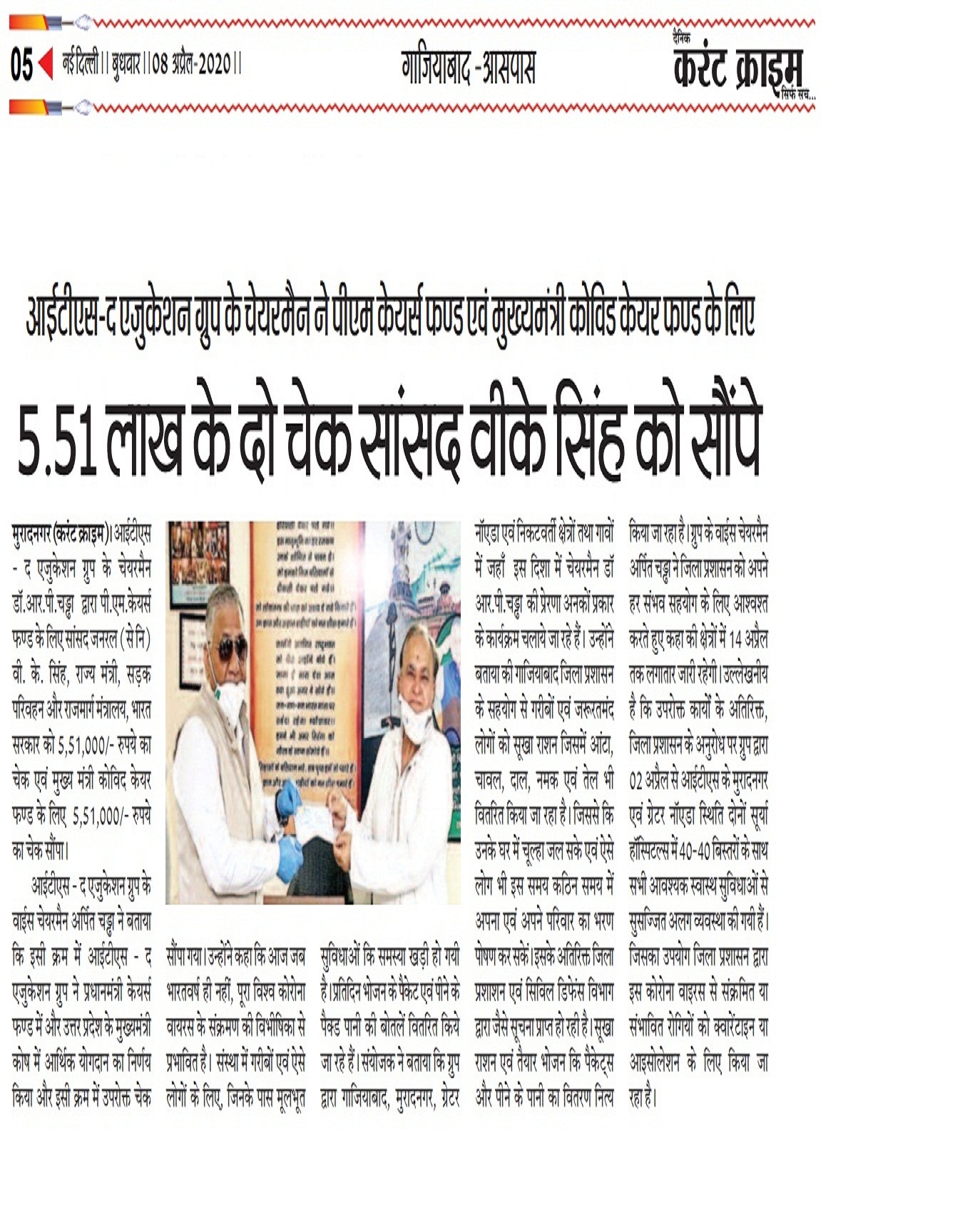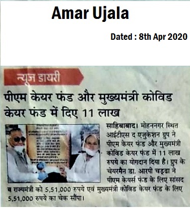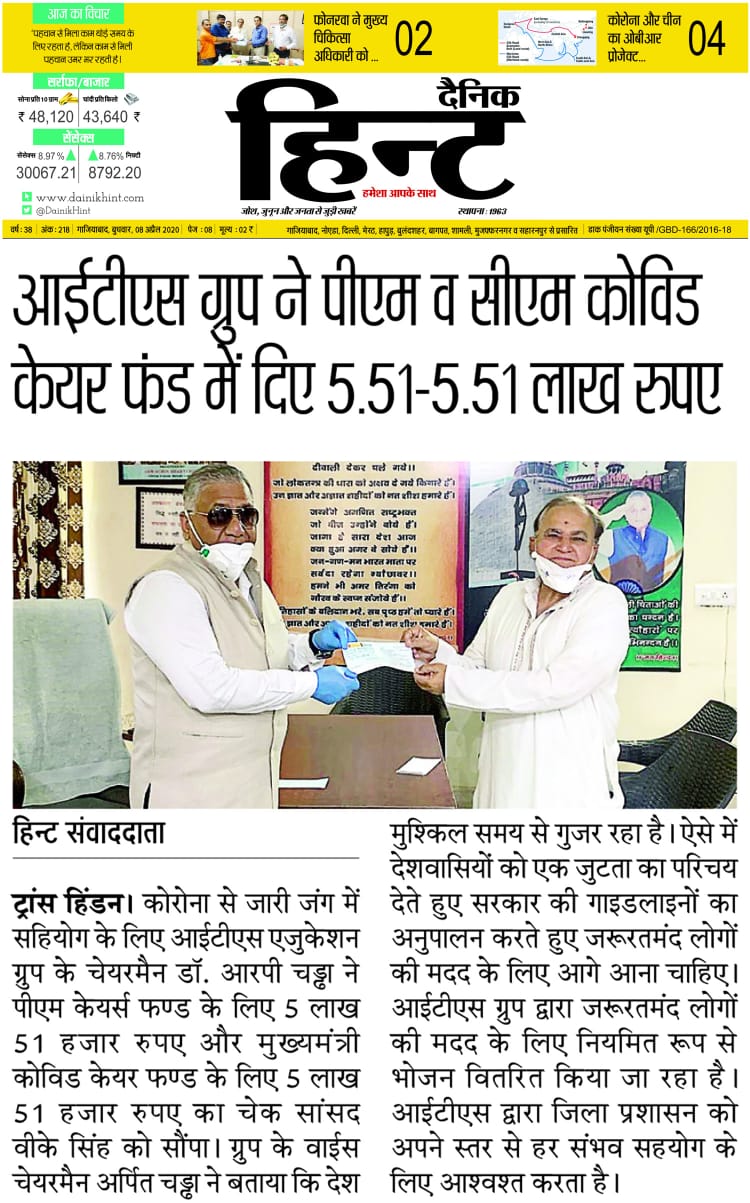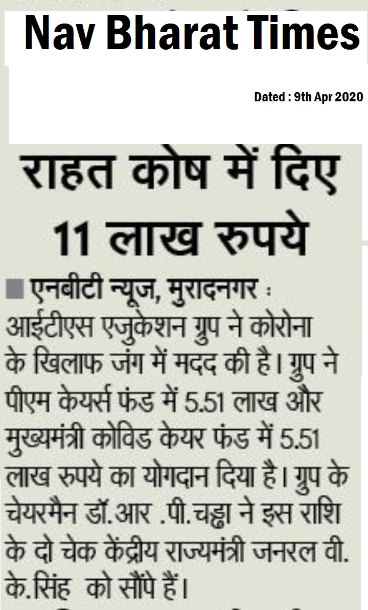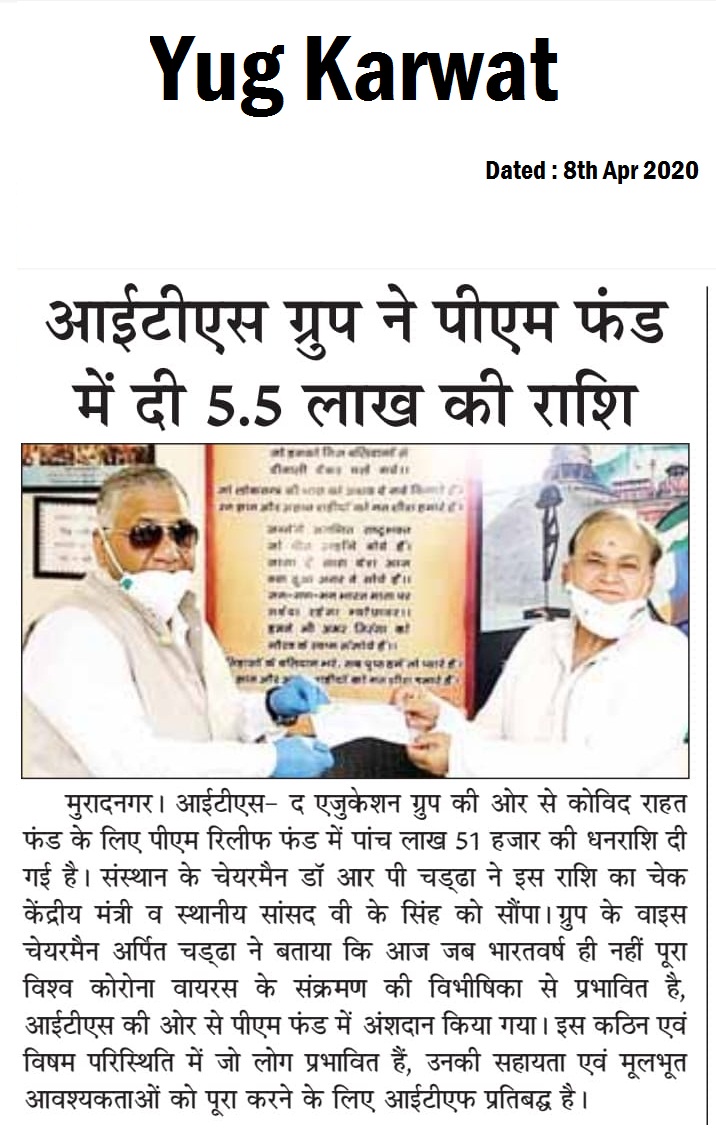 I.T.S - The Education Group contributes towards PM CARES Fund and Chief Minister Covid Care Fund