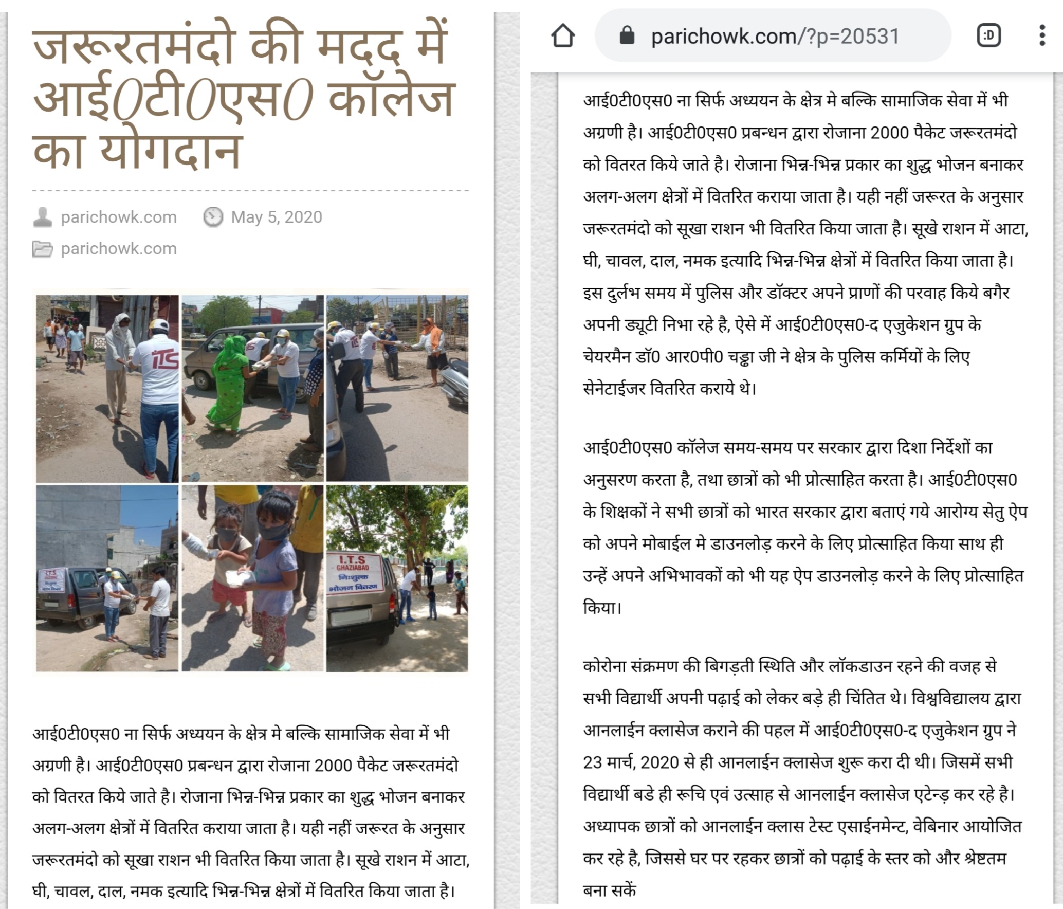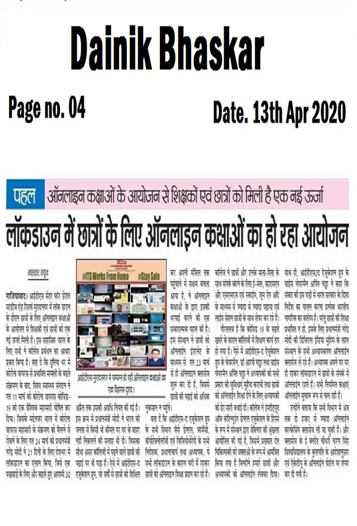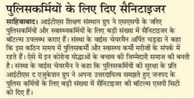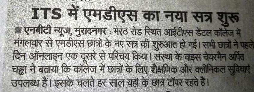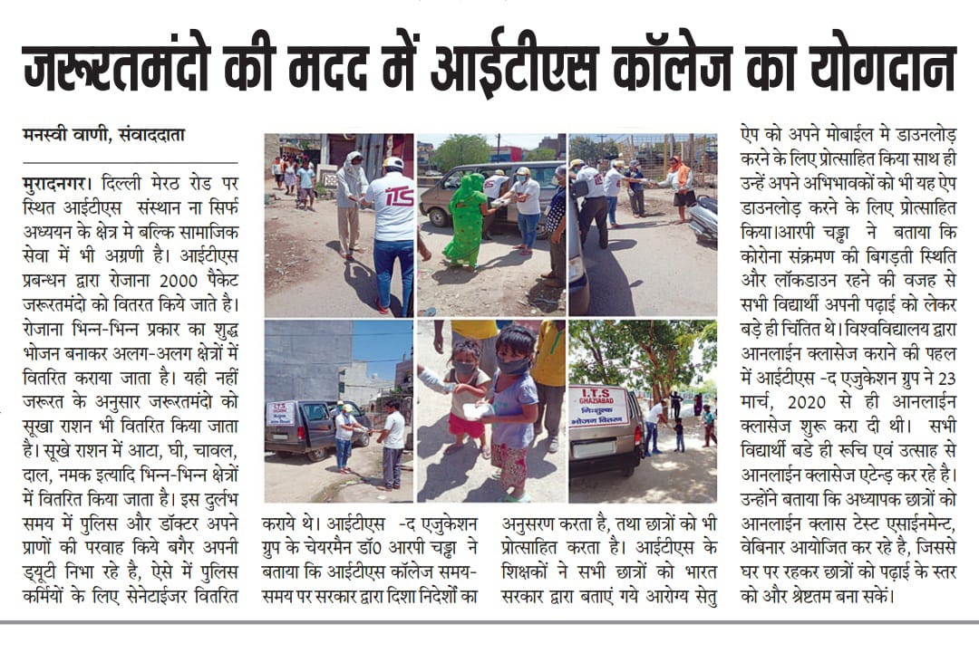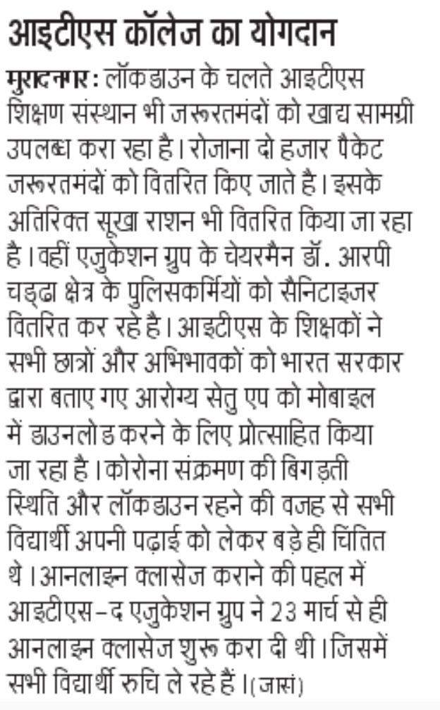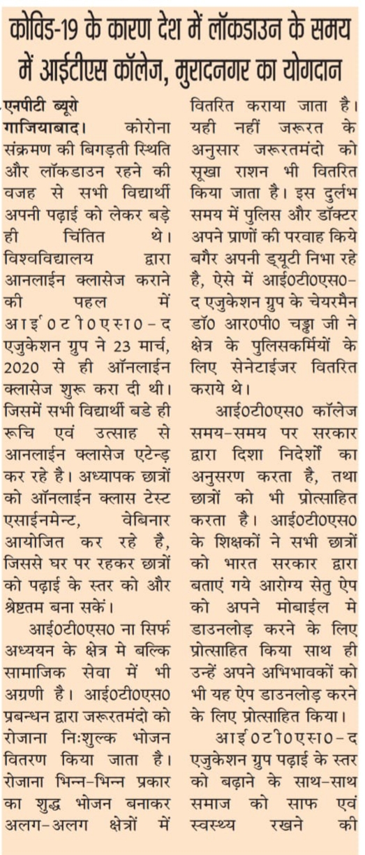 Enormous Media Coverage of Noble initiative taken up by I.T.S Ghaziabad!