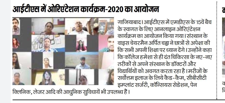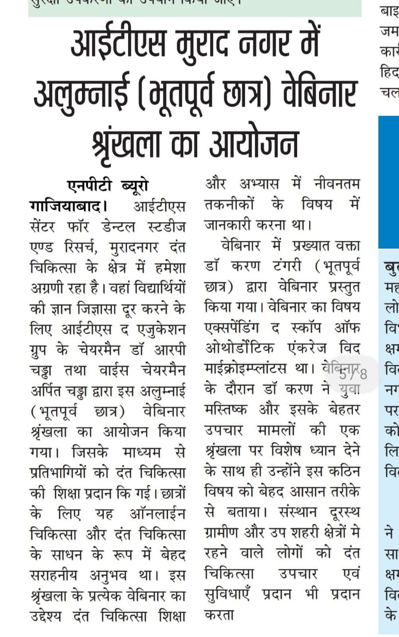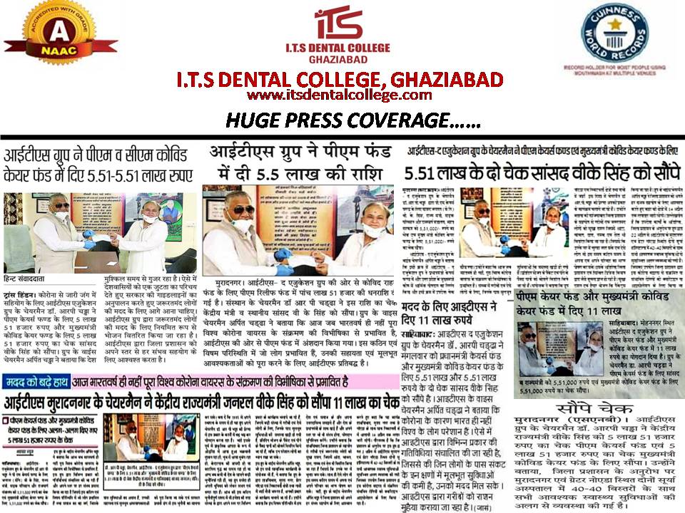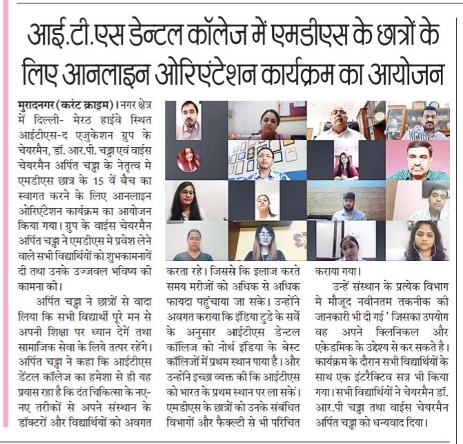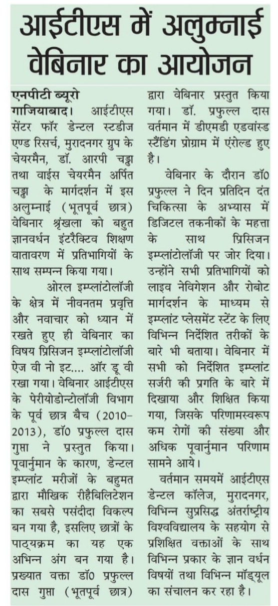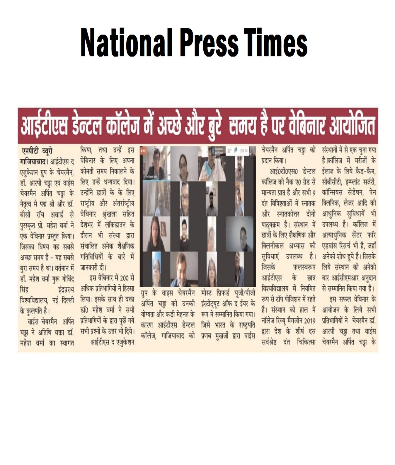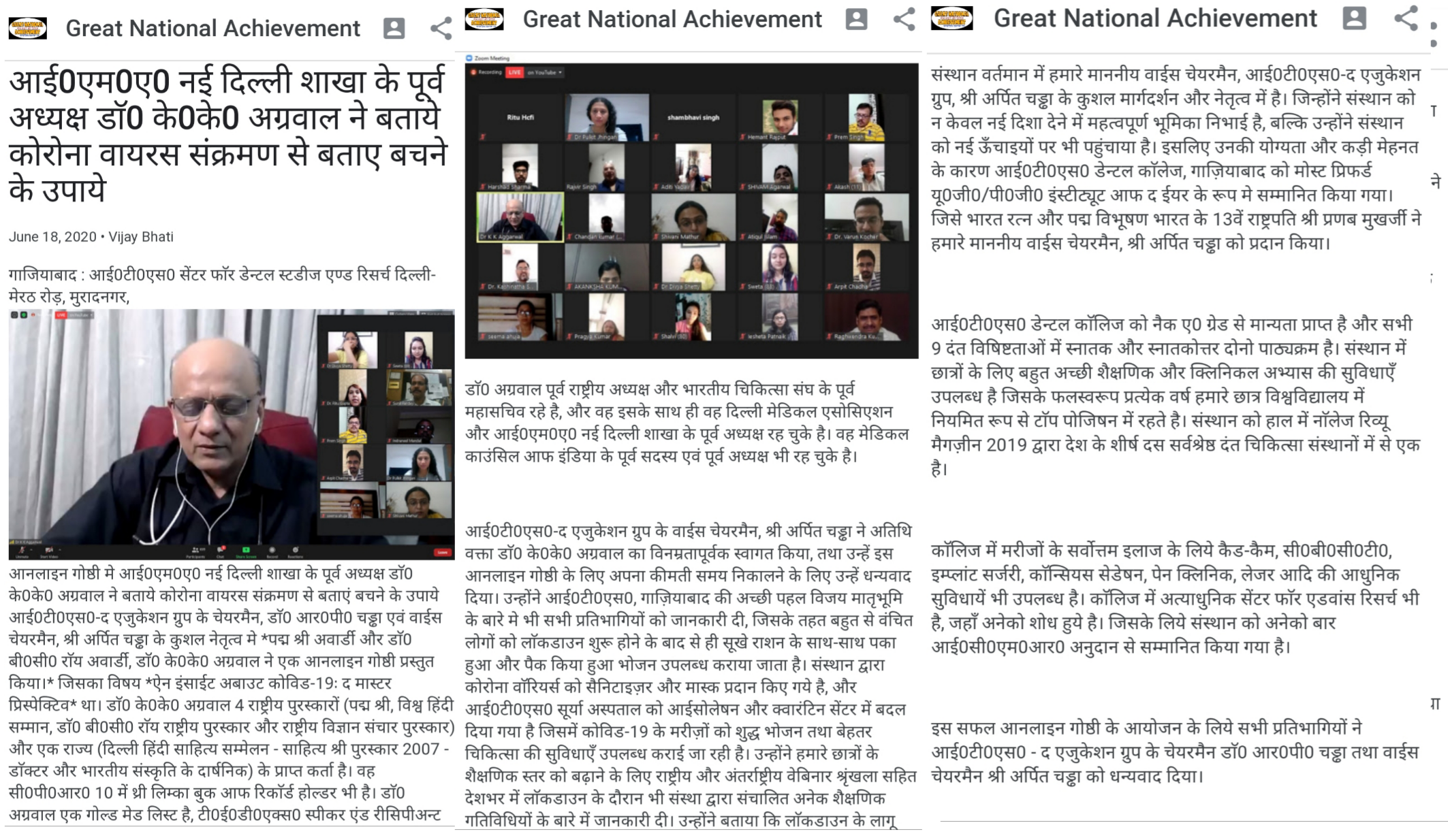 Massive press coverage of I.T.S Dental College Ghaziabad which hosted Padma Shri Awardee and Dr B.C. Roy Awardee, Prof.(Dr.) Mahesh Verma in a Webinar