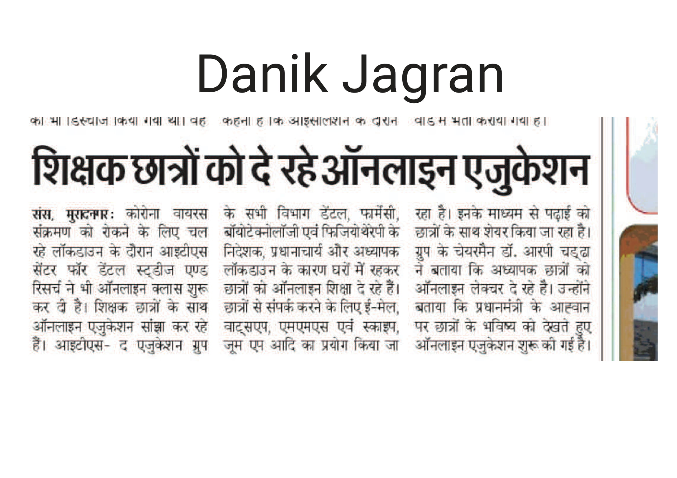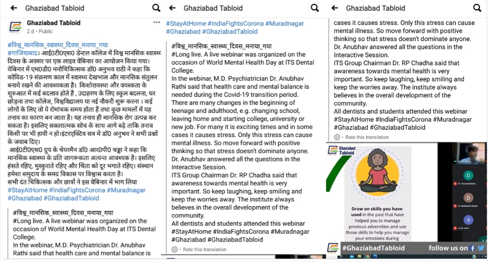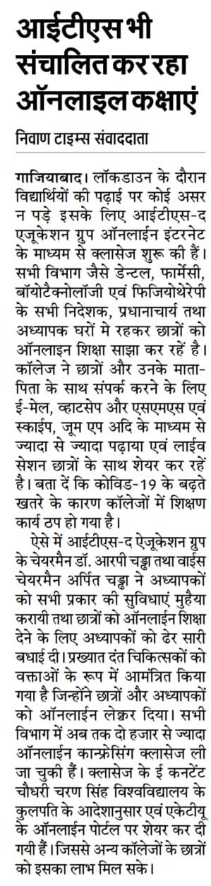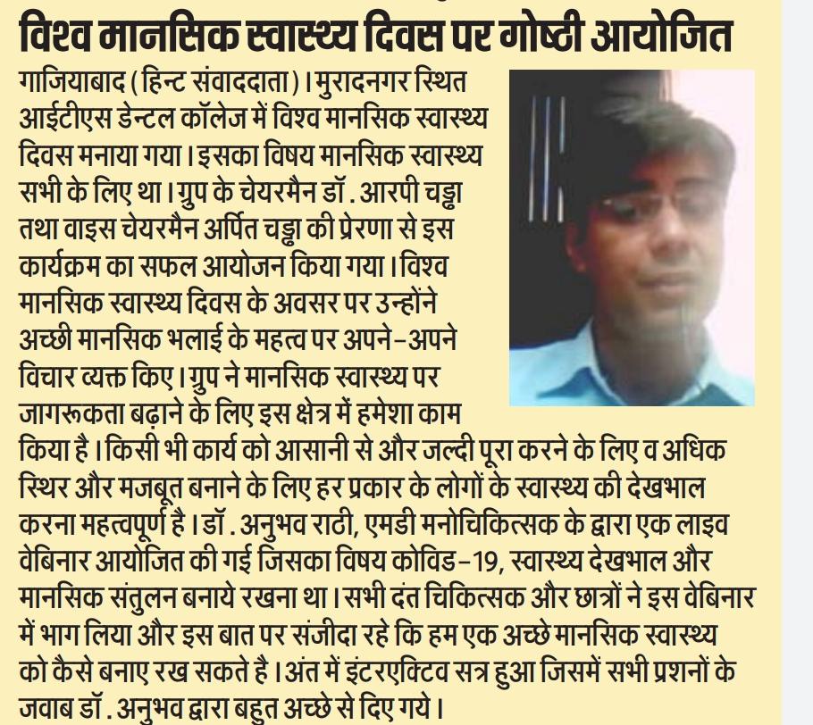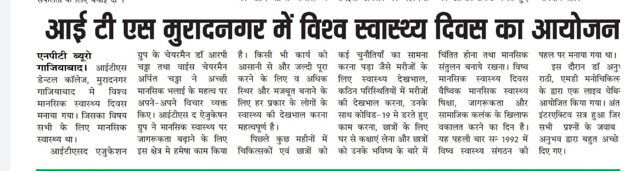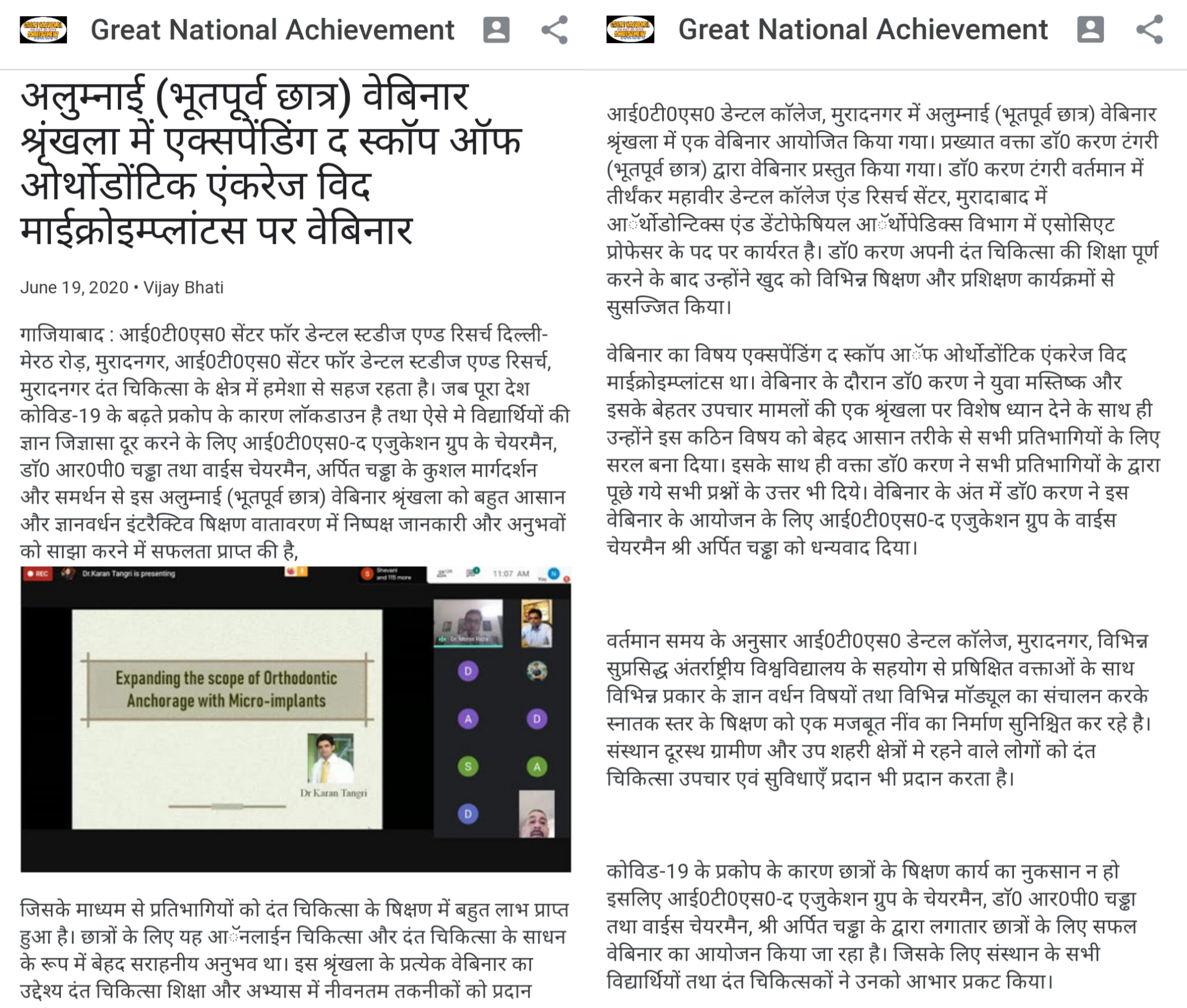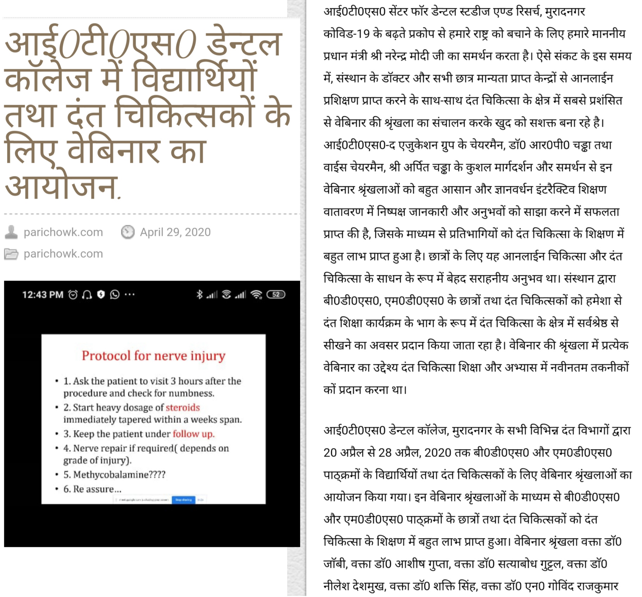 Massive press coverage of I.T.S Dental College Ghaziabad which hosted Padma Shri Awardee and Dr B.C. Roy Awardee, Prof.(Dr.) Mahesh Verma in a Webinar
