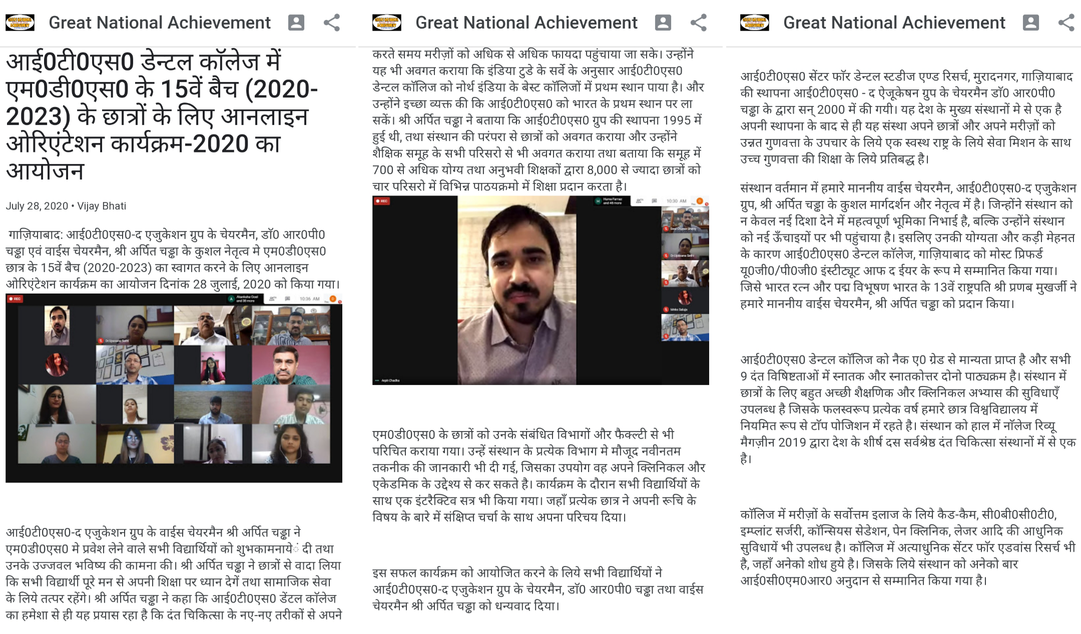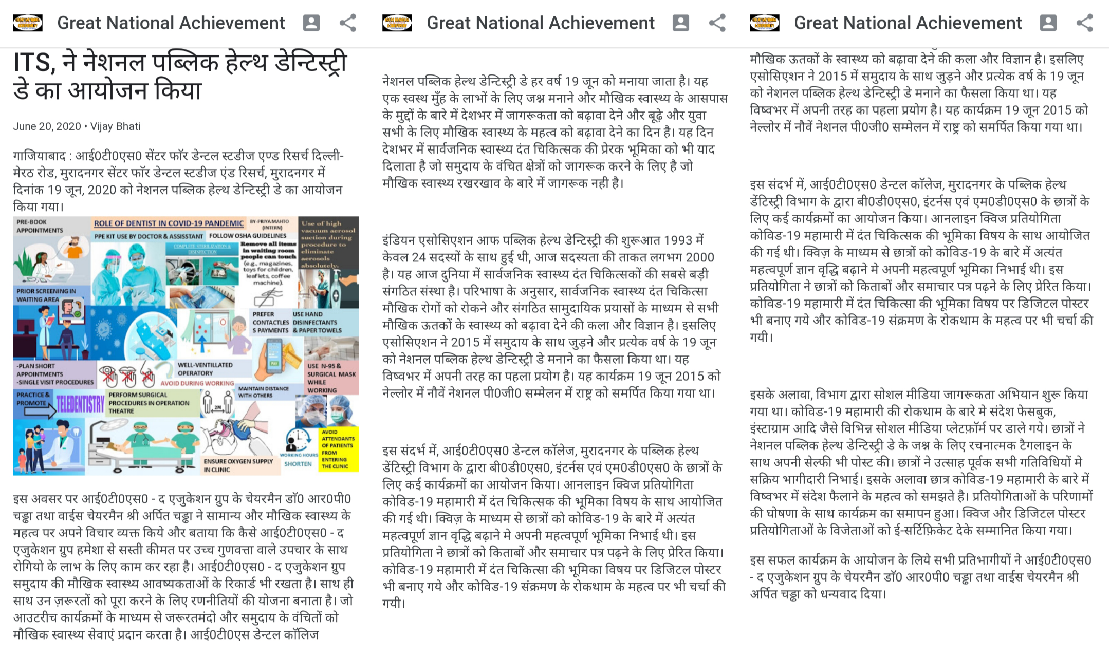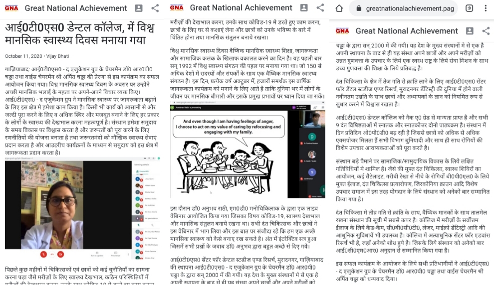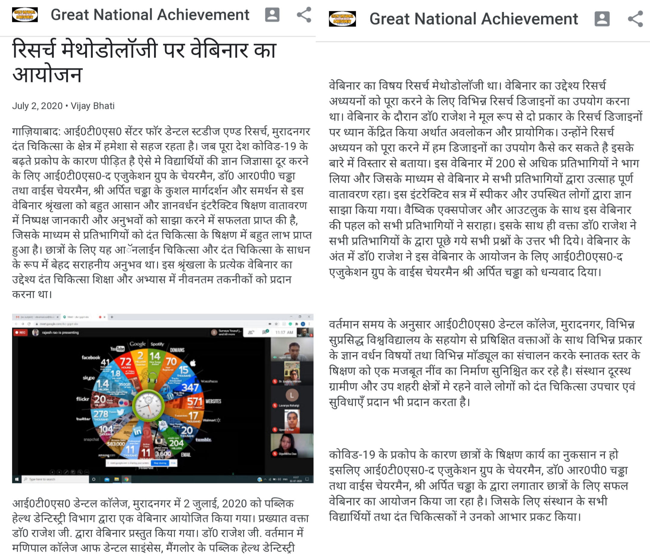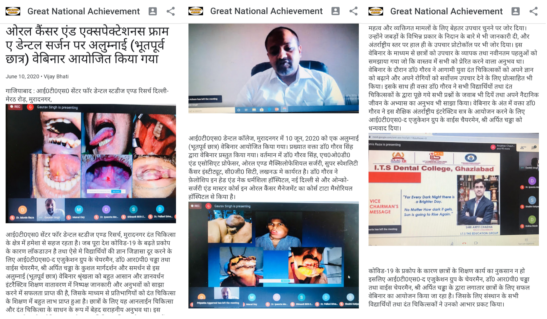 Massive press coverage of I.T.S Dental College Ghaziabad which hosted Padma Shri Awardee and Dr B.C. Roy Awardee, Prof.(Dr.) Mahesh Verma in a Webinar