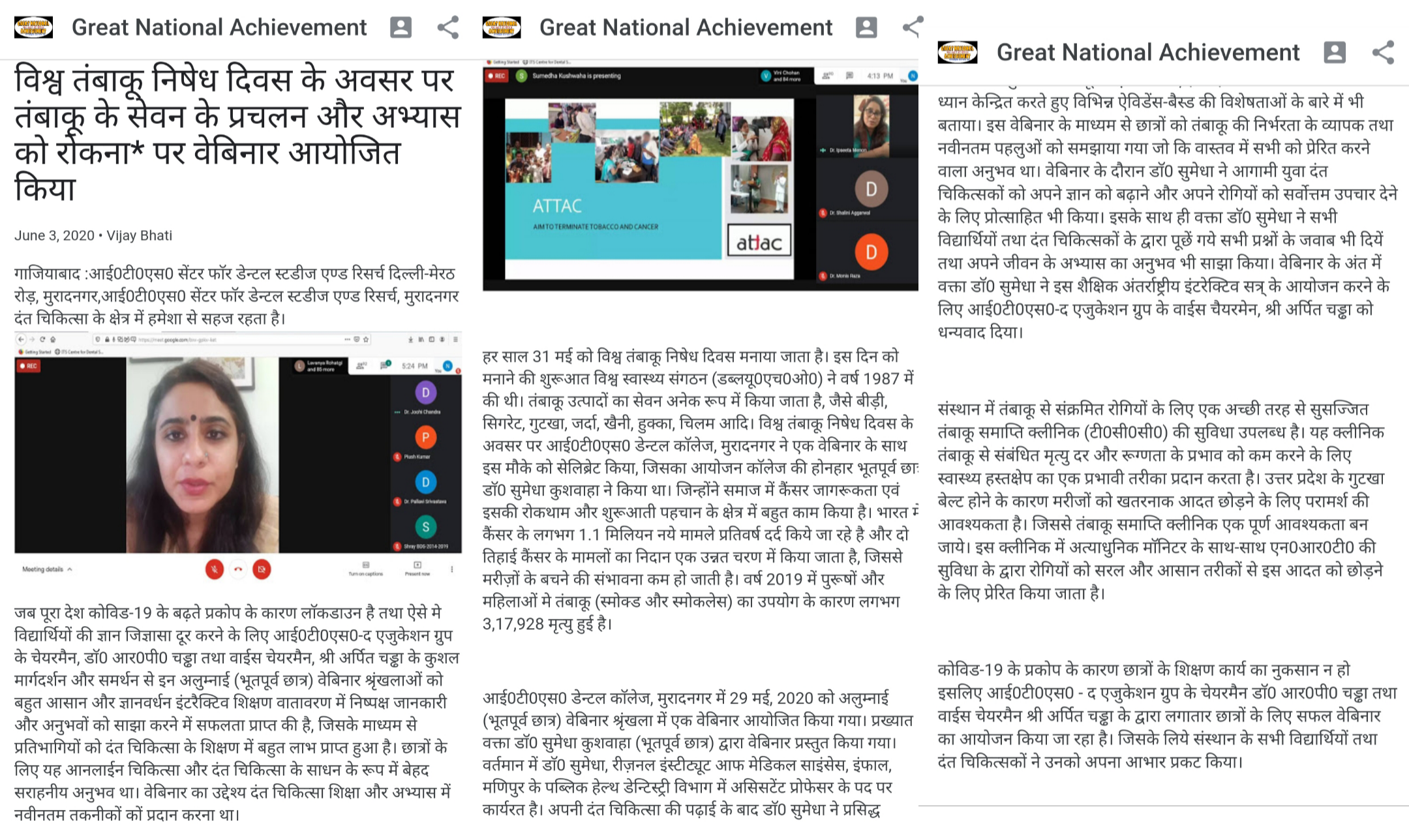 Massive Media Coverage of the Alumni Webinar on “Oral Cancer and Expectations from Dental Surgeon”
