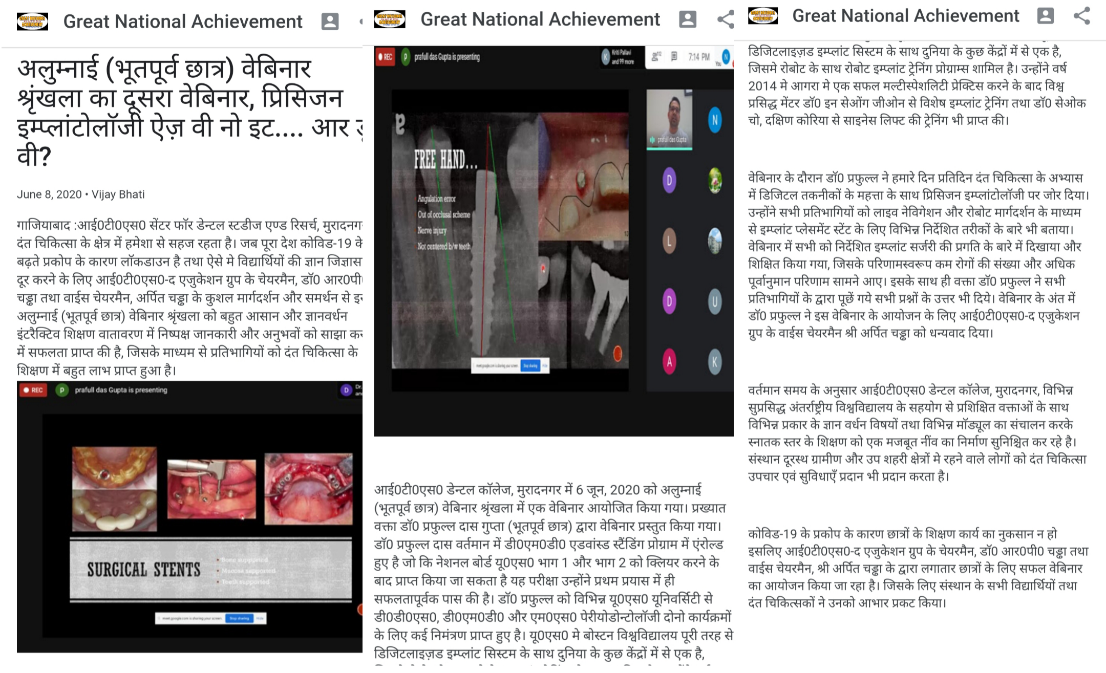 Huge Press Coverage of Alumni Webinar on “Precision Implantology as we know it…or do we?"