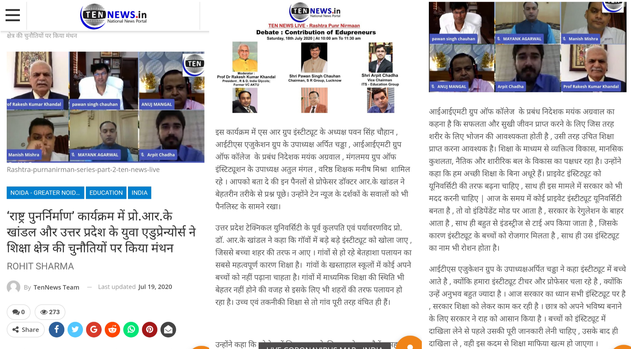 Massive media coverage of our honorable Vice Chairman, I.T.S-The Education Group, Mr Arpit Chadha who was live @ TEN NEWS.in