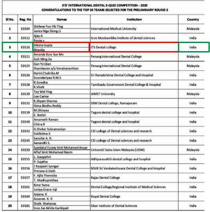 Students of I.T.S Dental College Ghaziabad qualified for next round of 3’O’International Dental E-Quiz