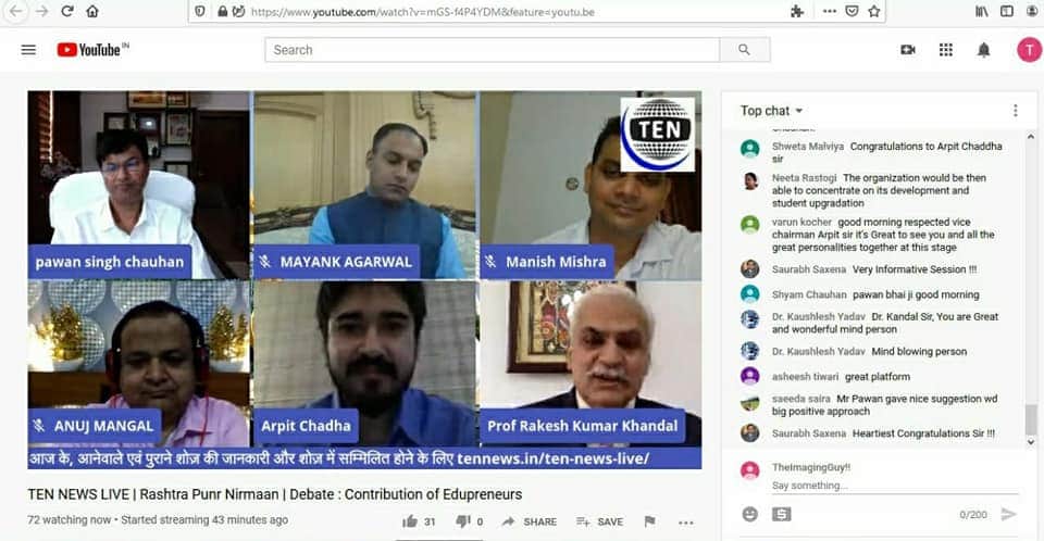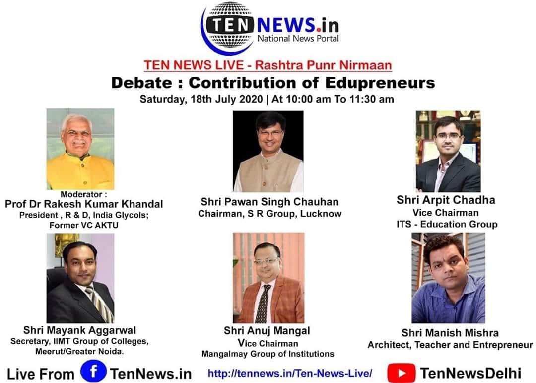 Hon. Vice Chairman, I.T.S-The Education Group, Mr Arpit Chadha was live in a Debate on TENNEWS.in