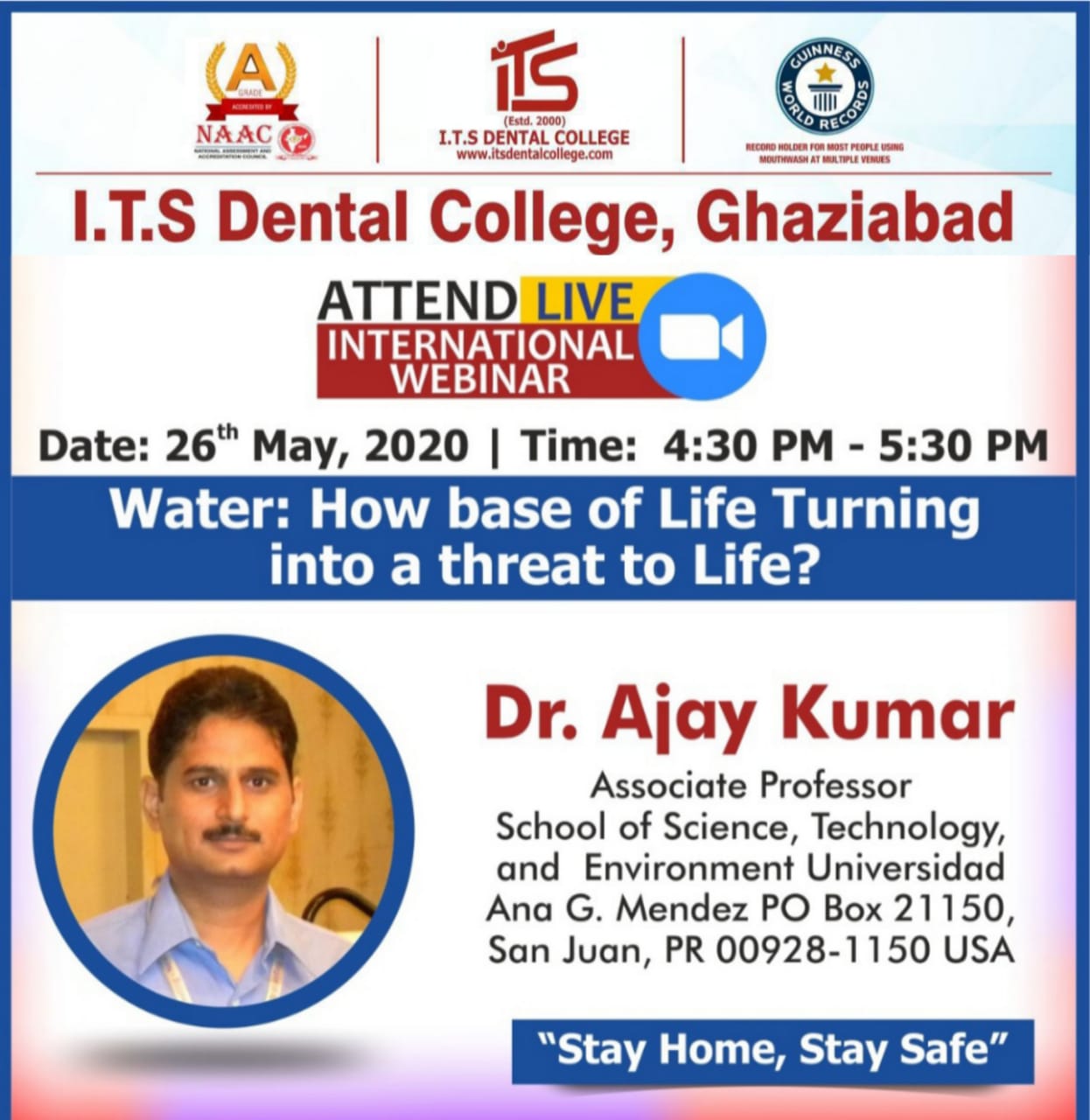 I.T.S Dental College,Ghaziabad, International Webinar series - Water: How base of life Turing into Threat of Life?