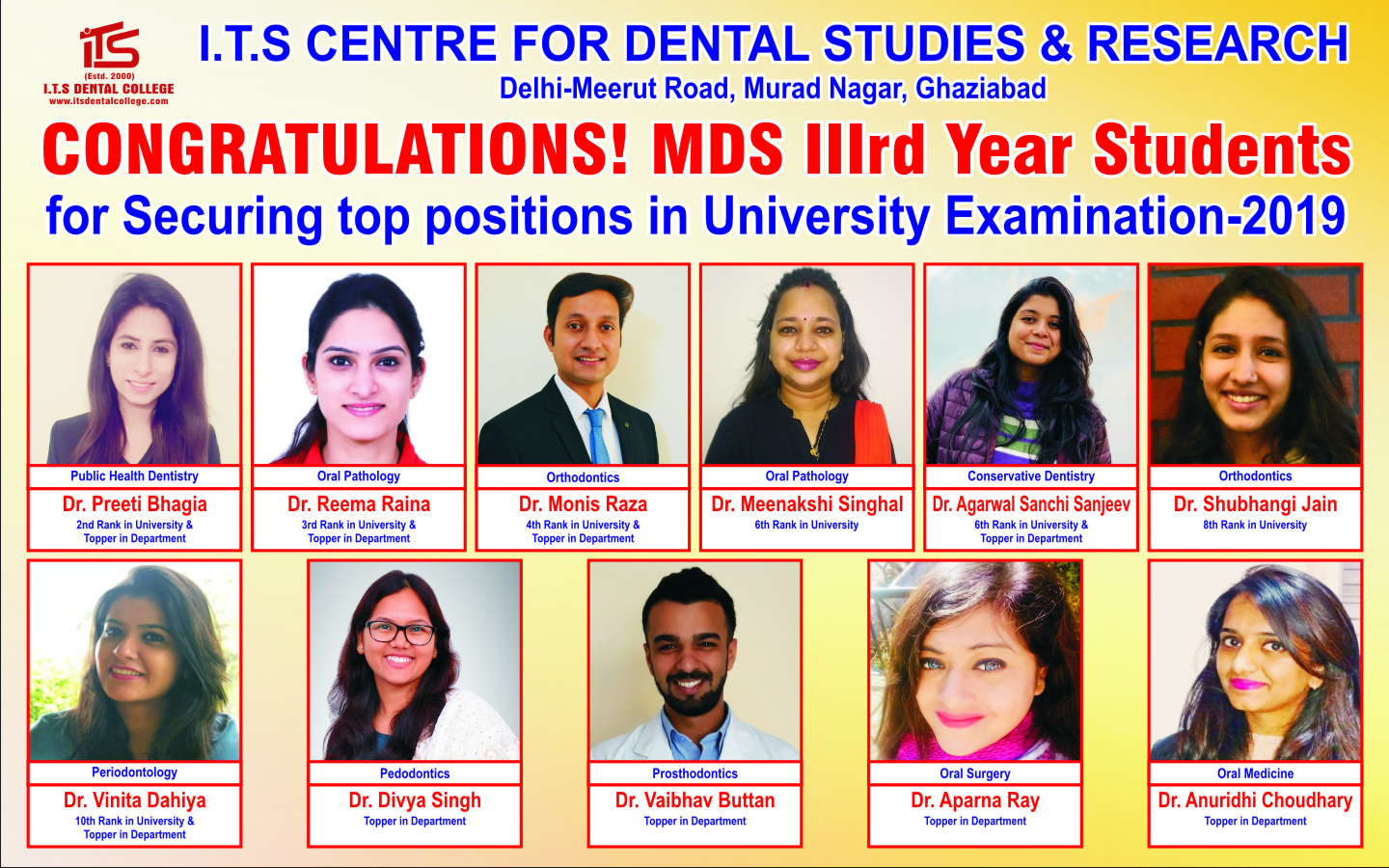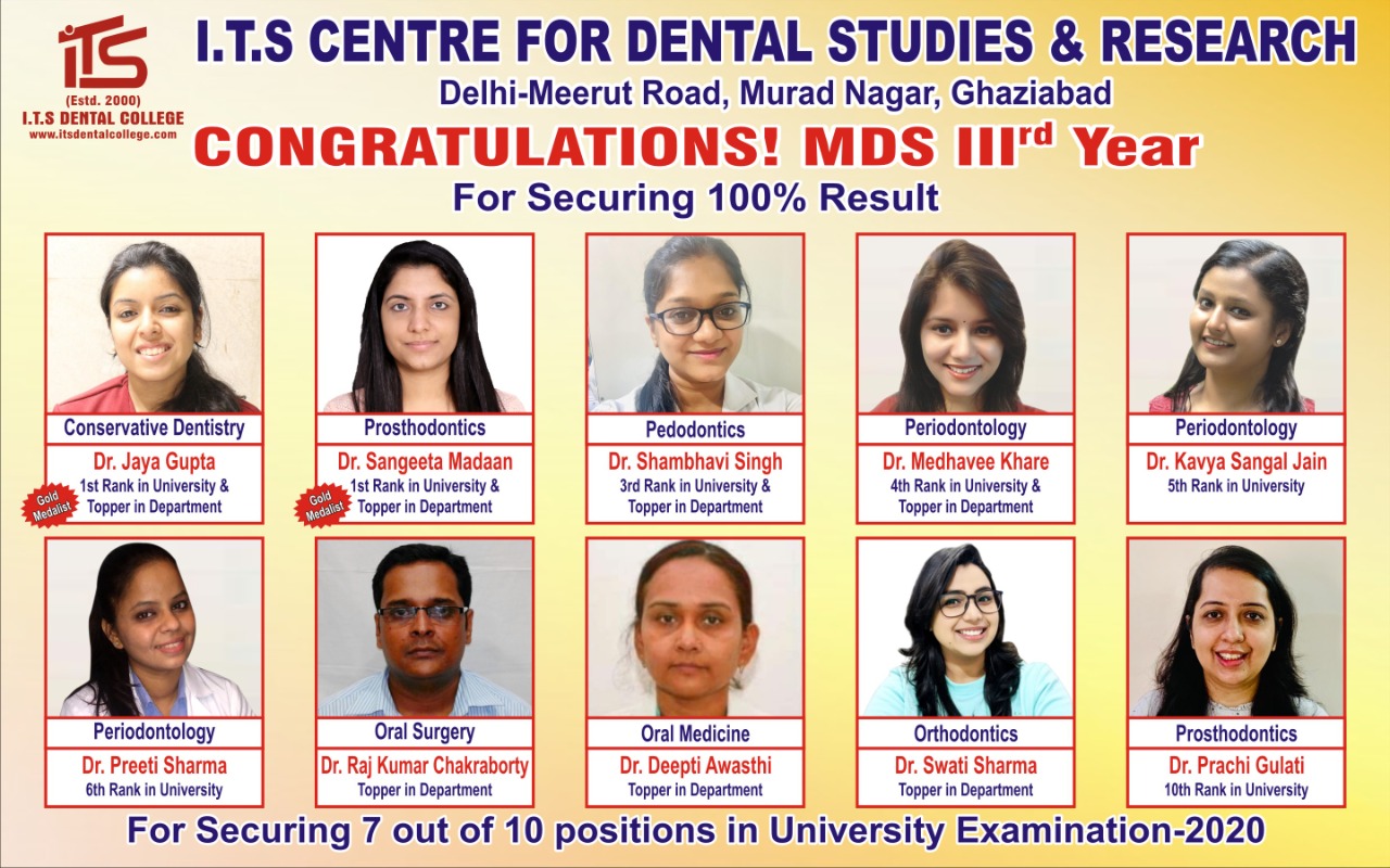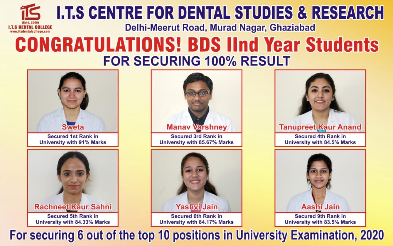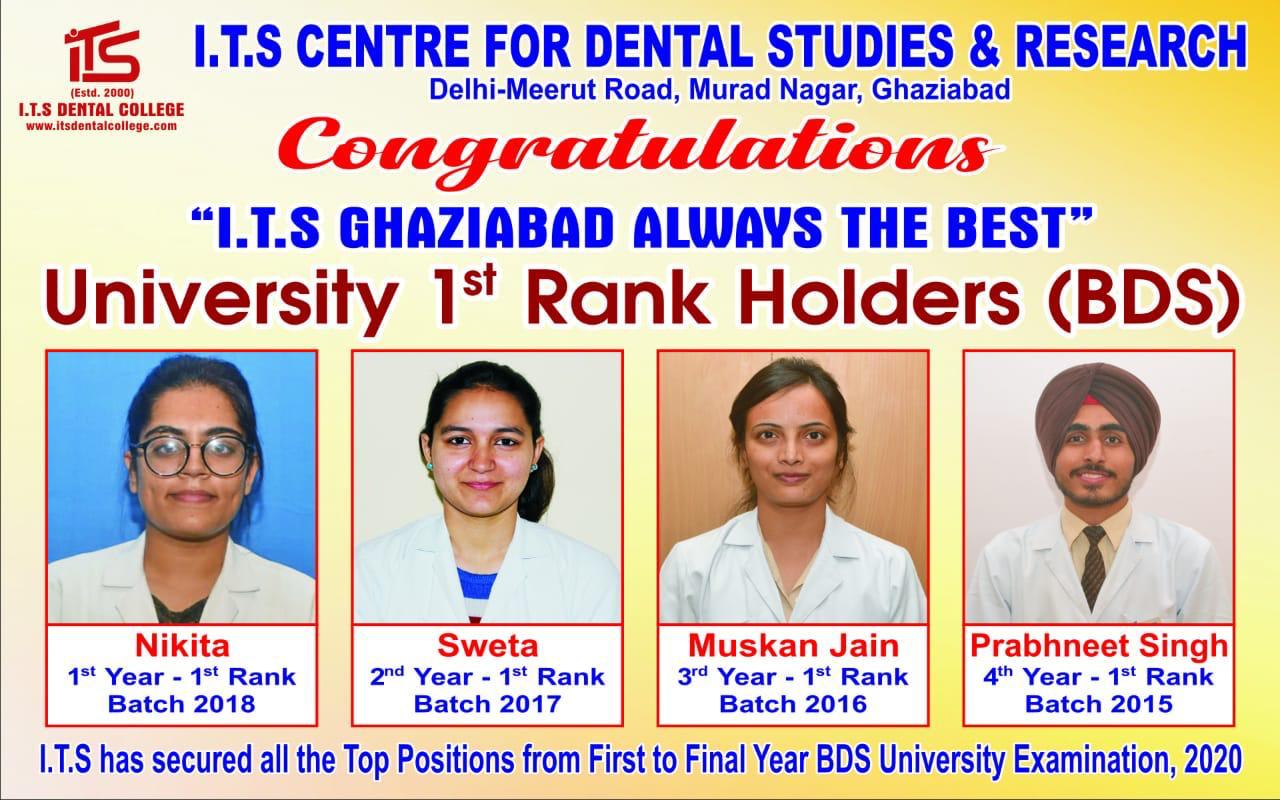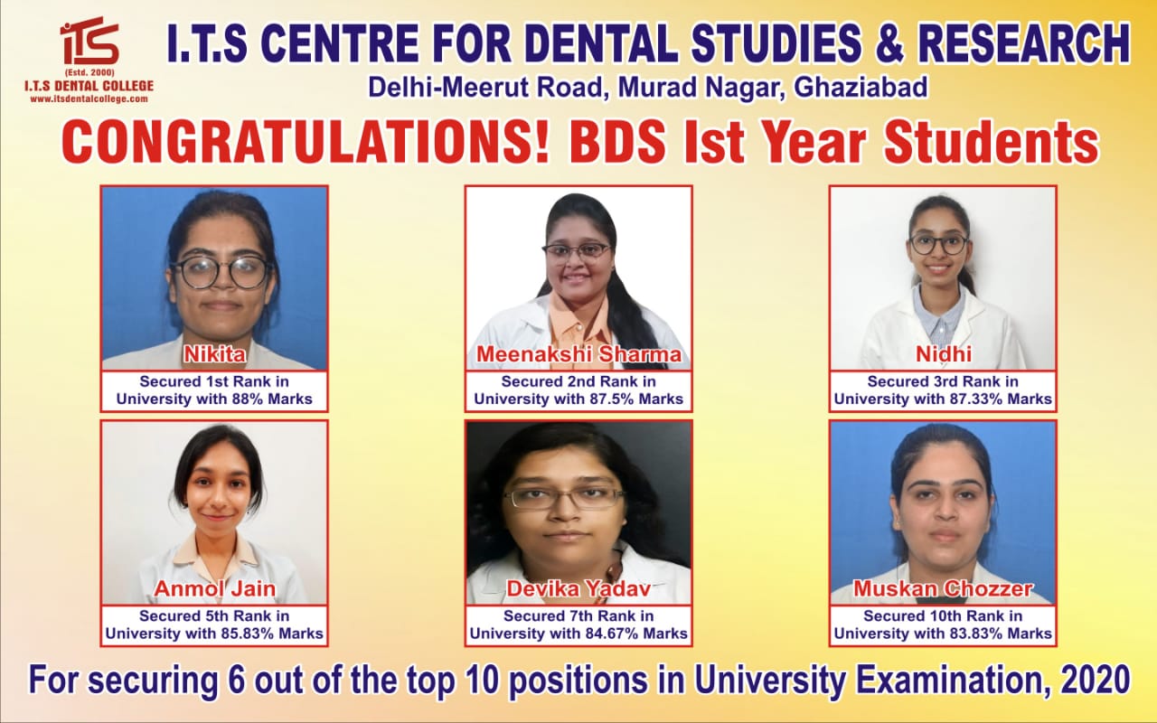I.T.S Dental College, Ghaziabad secures all The Top Positions from First to Final Year BDS in University Examinations, 2020