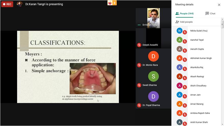 I.T.S Dental College, Ghaziabad, International Webinar Series: Management of Extraction Spaces / Space Closure Mechanics
