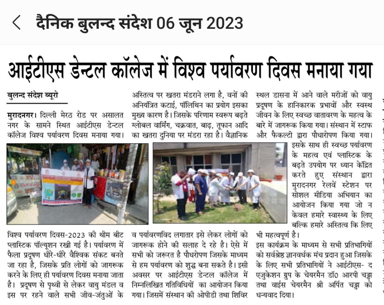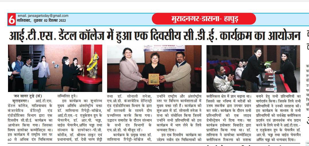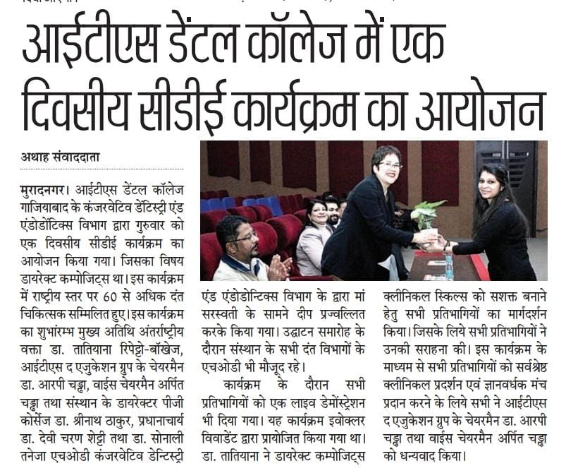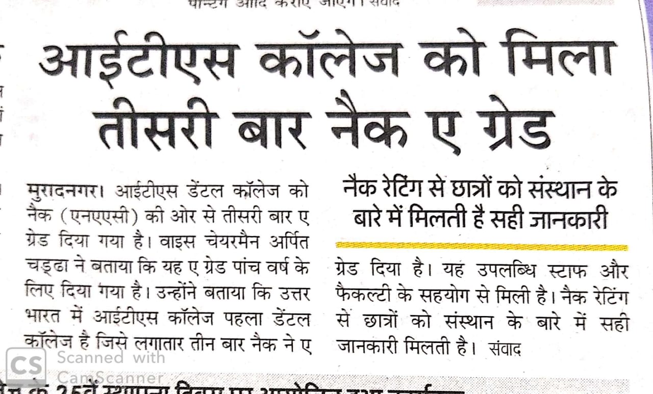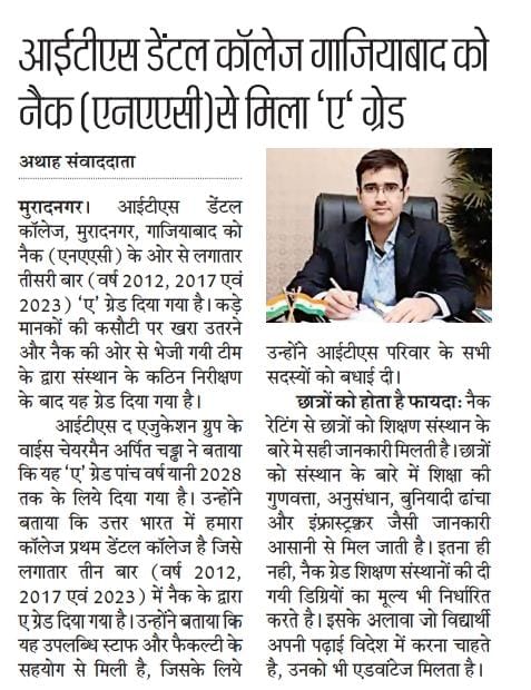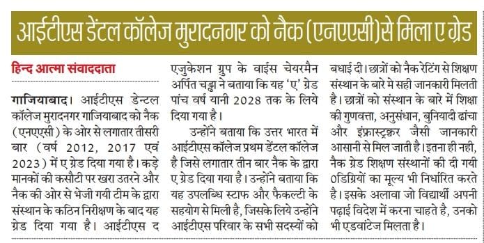 Media Coverage of I.T.S Dental College, Ghaziabad being Accredited with NAAC "A" Grade