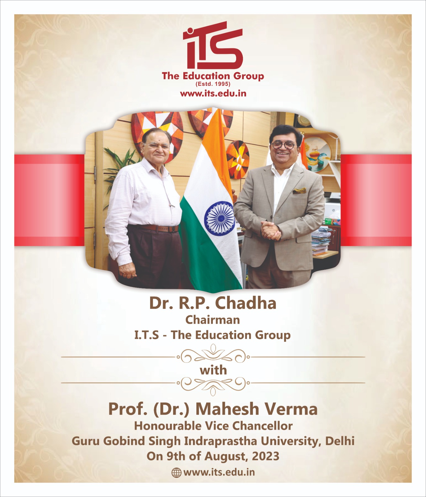 Honorable Chairman, I.T.S- The Education Group, Dr. R.P Chadha had a warm meeting with Padma Shri Awardee, Dr. B.C Roy Awardee and National Science & Technology Awardee, Prof.(Dr.) Mahesh Verma, Vice Chancellor, Guru Gobind Singh Indraprastha University,