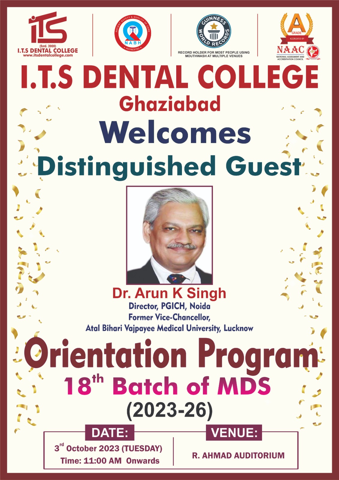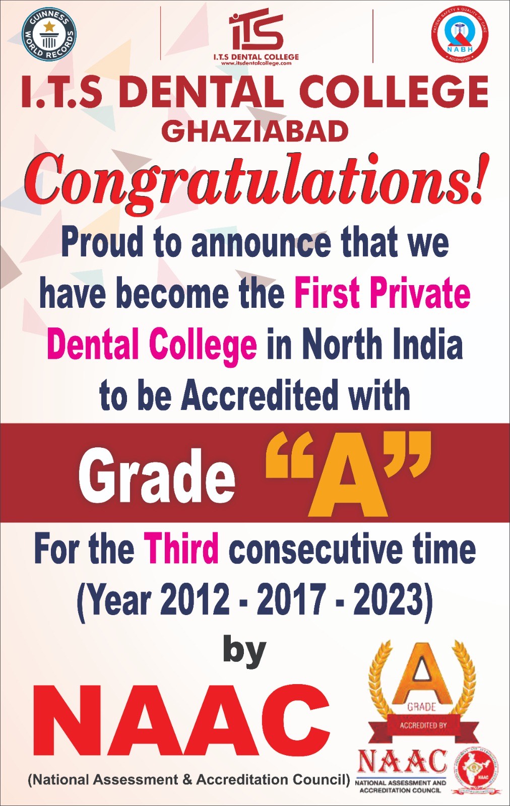 I.T.S Dental College, Ghaziabad has been Accredited with Grade "A" for the Third Consecutive time (Year 2012-2017-2023) by NAAC (National Assessment & Accreditation Council)
