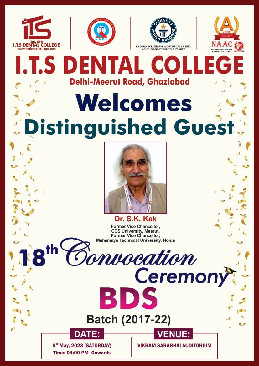 Annual Convocation Ceremony 2023 was organized for 18th Batch of BDS at I.T.S Dental College, Ghaziabad on 6th May 2023.