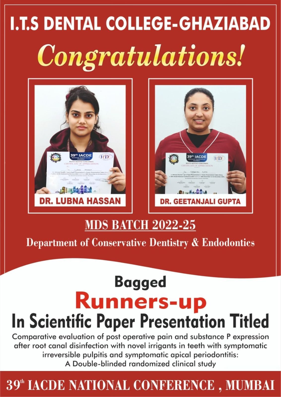 PG Award- Dr. Lubna & Dr. Geetanjali, Endodontics