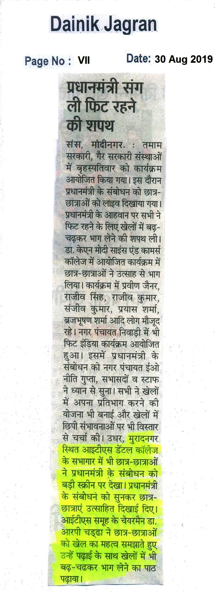 Covered By Dainik Jagran, Navbharat Times (Hindi) on 1st Aug 2018 |