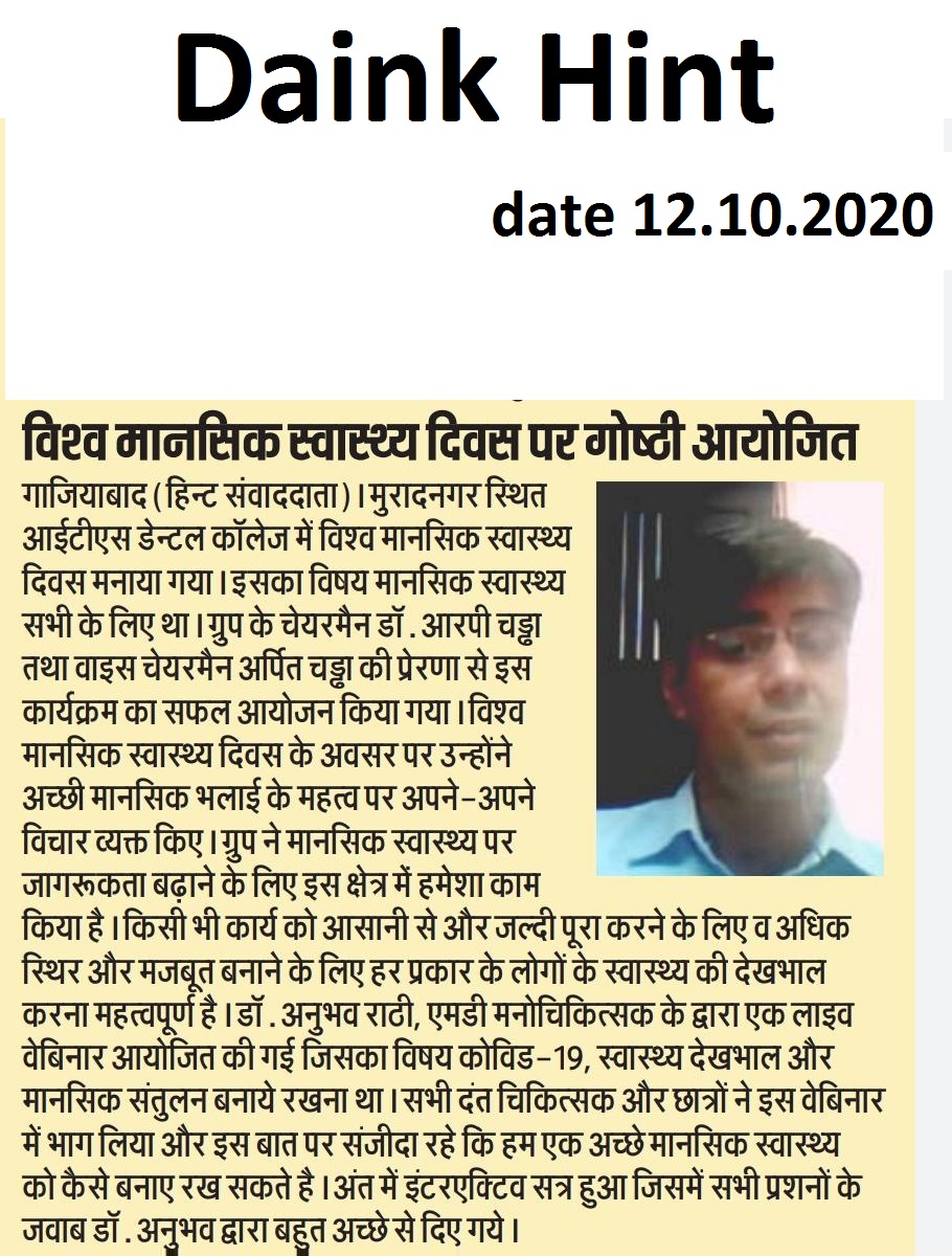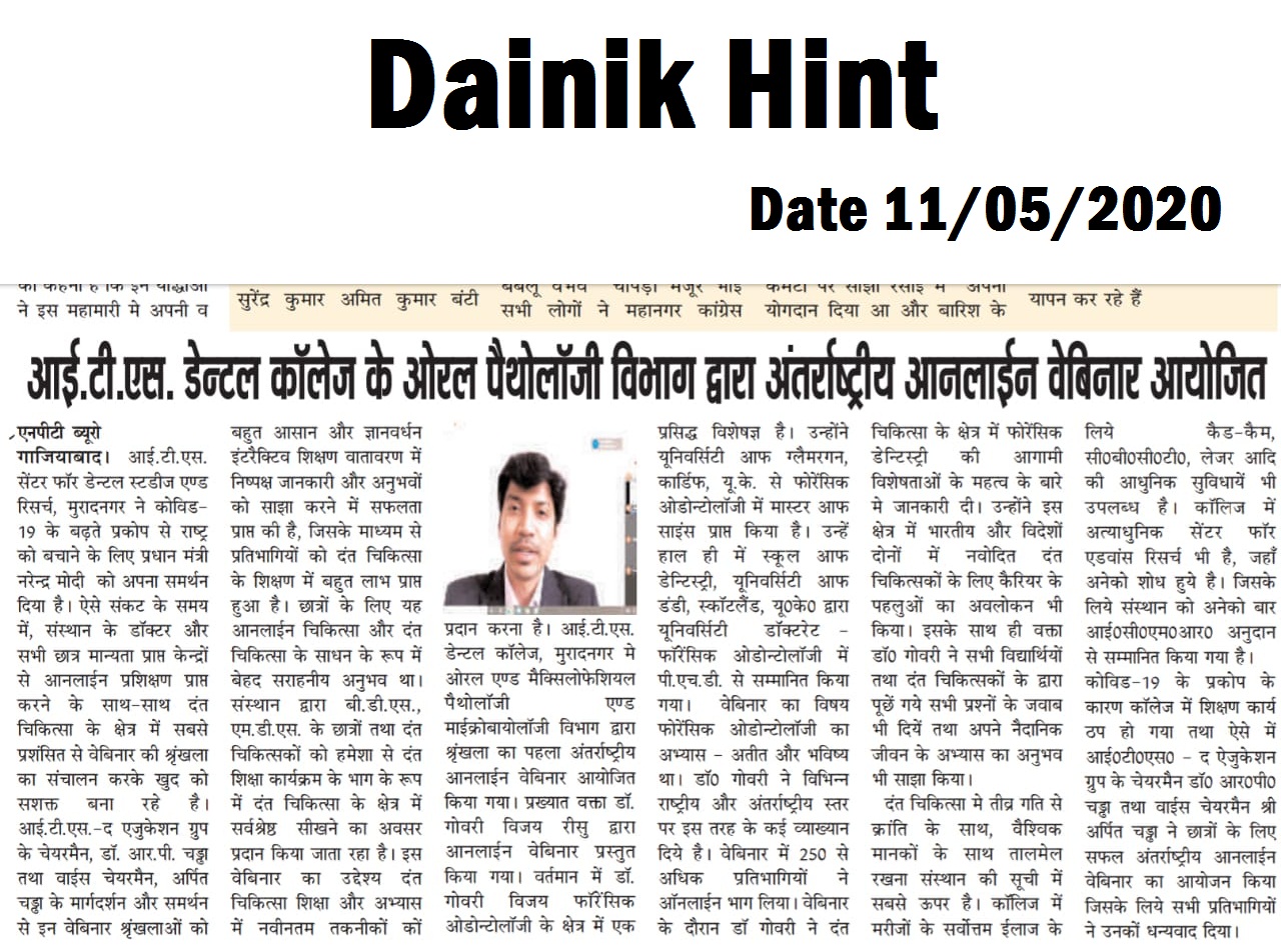 | Medical News by I.T.S faculty Dr. Suraj Suvarna