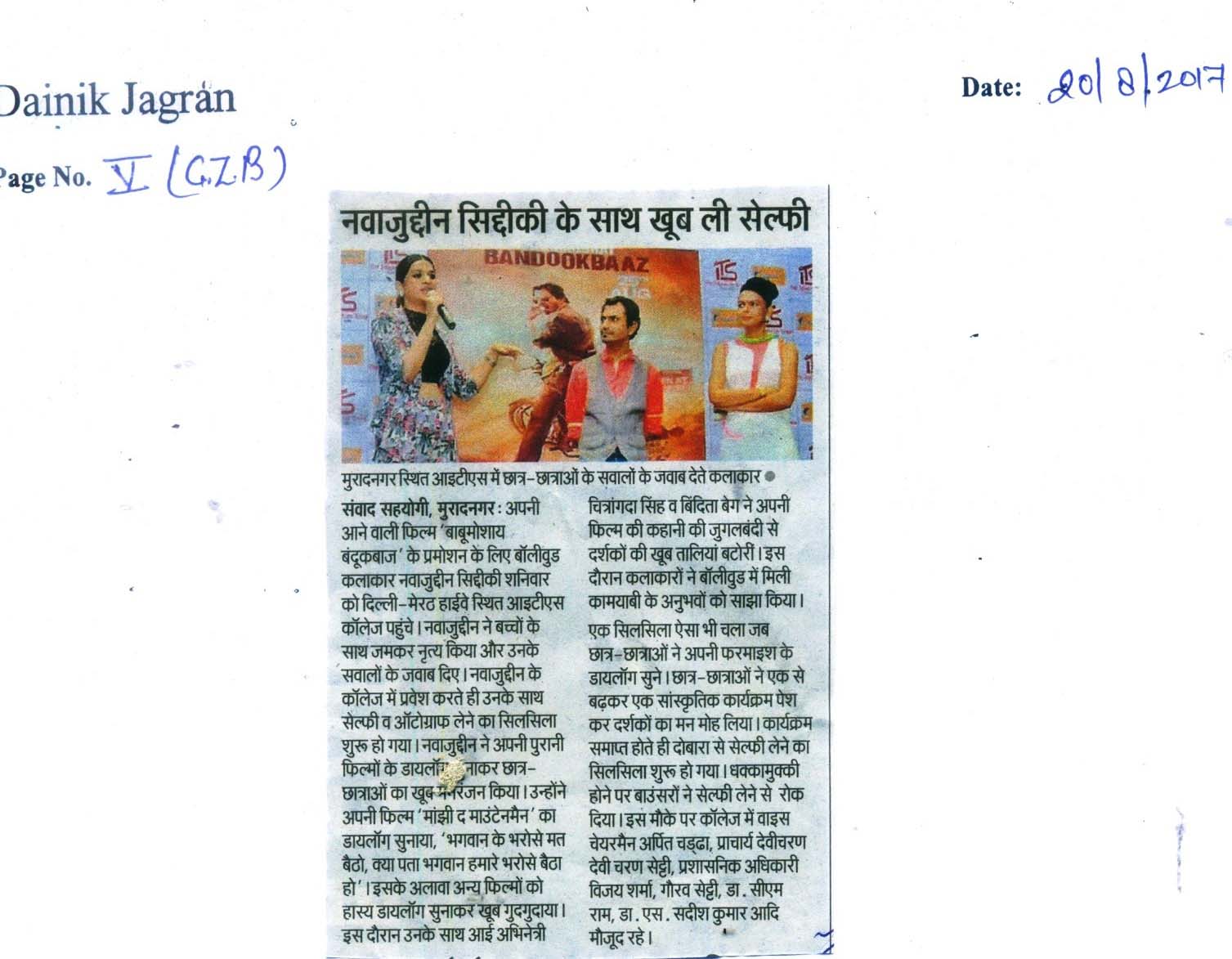 | News Clipping Nawazuddin Siddiqui in I.T.S