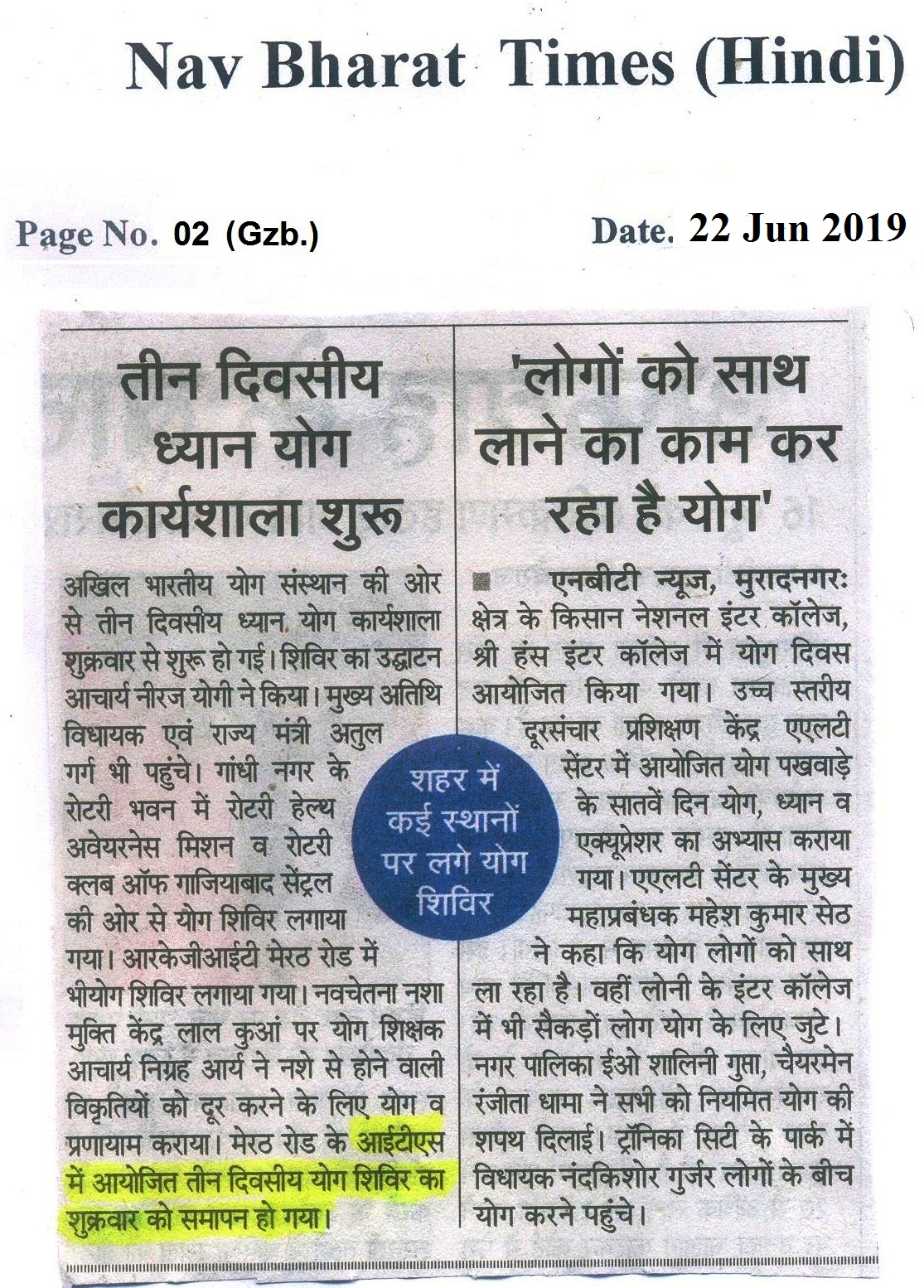 Covered By Navbharat Times & Amar Ujala on 01-06-2018 |