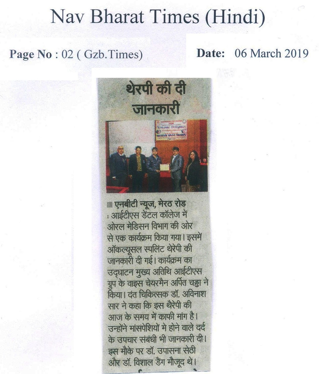 Covered by Nav Bharat Times & Niwan Times on 17th Jan 2019 |