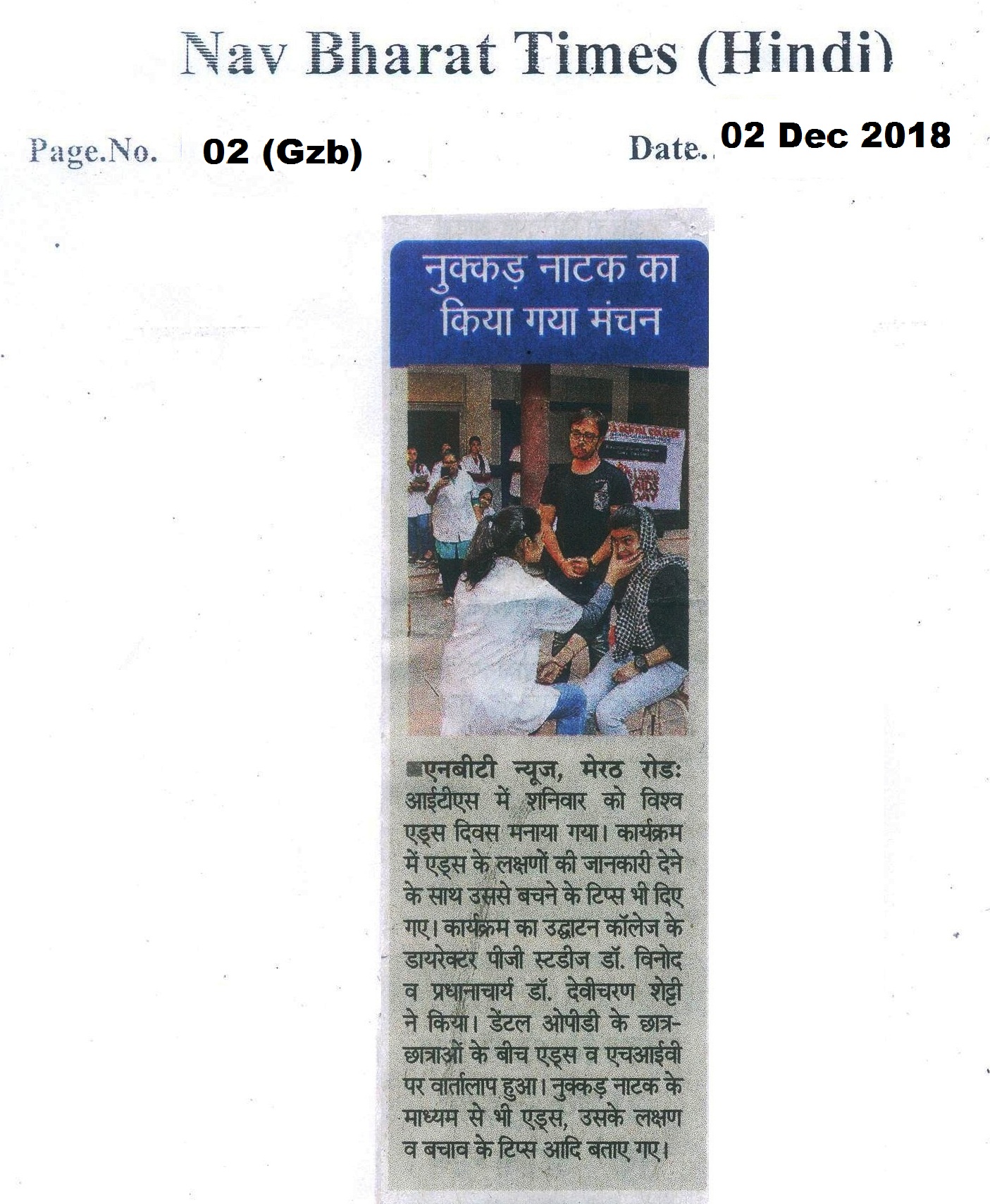Covered by Nav Bharat Times (Hindi) on 2nd Dec 2018 |