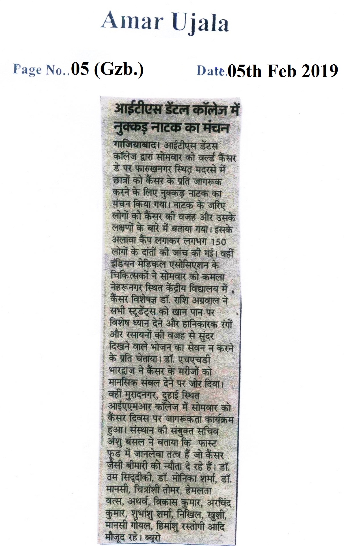 Covered By Hindustan Times, Amar Ujala, Navbharat Times on 25th & 26th Feb 2018 |